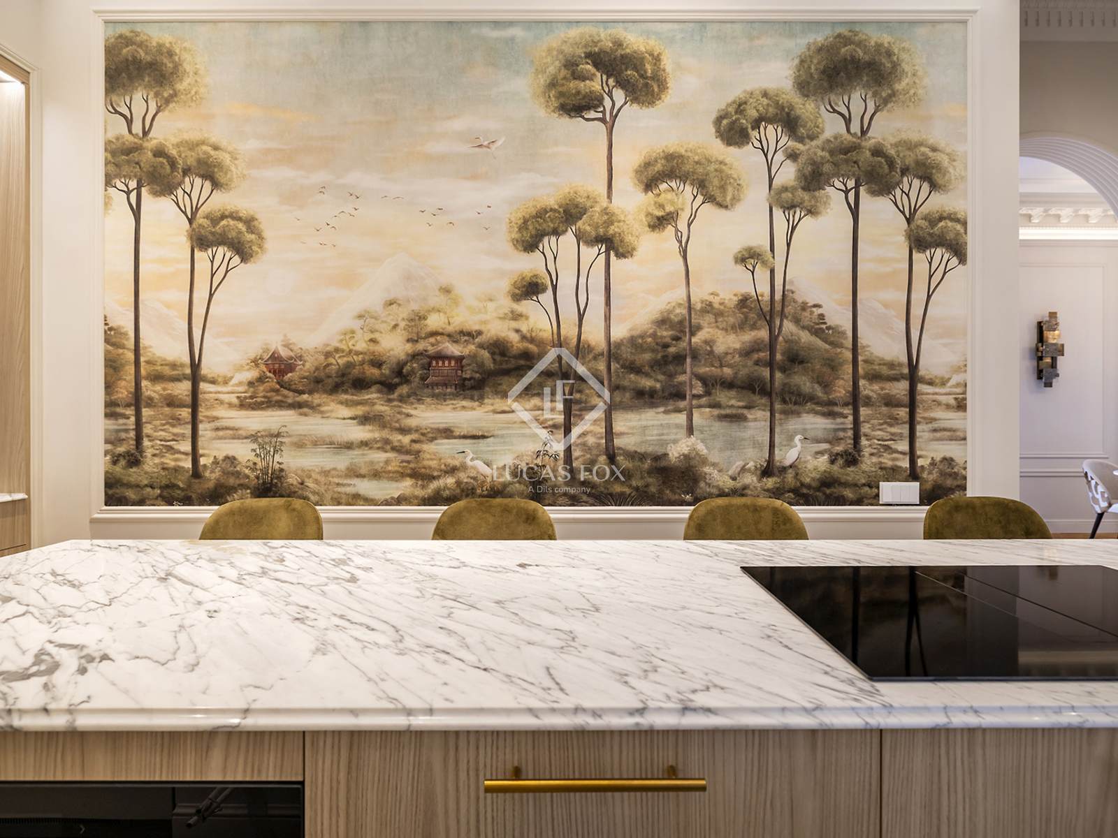 High-quality materials such as natural wooden floors, marble, and custom-made mirrors were used in the refurbishment. The carpentry is entirely new and bespoke, offering superior thermal and acoustic insulation. The ceilings, which range from 3.60 to 3.70 metres in height, create a sense of spaciousness and grandeur, with indirect lighting accentuating the intricate handcrafted plaster ceilings and mouldings.