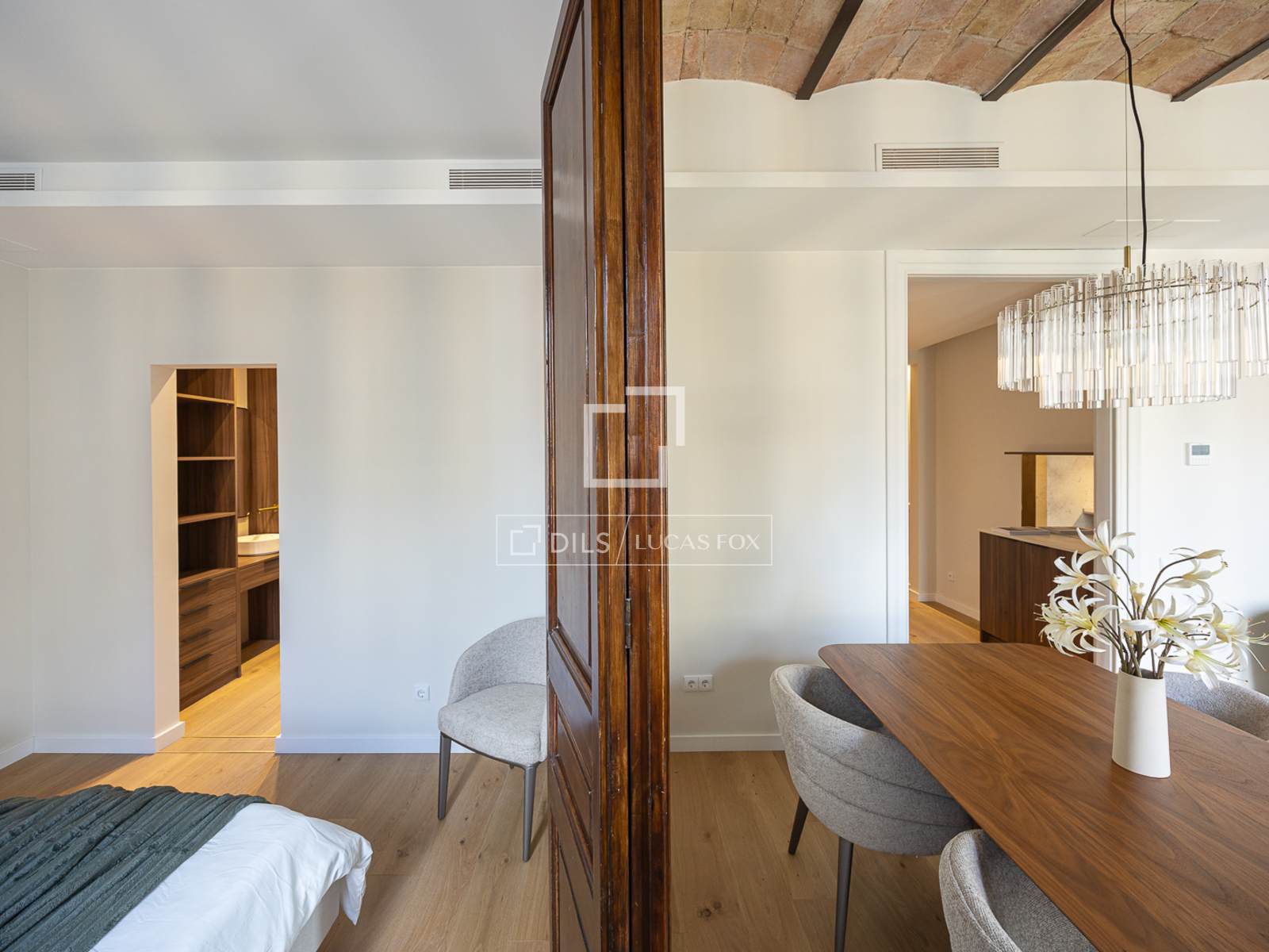 Located on the top floor of a classic Eixample building , the apartment stands out for its brightness, functional layout , and restored original elements, such as the characteristic Catalan vaulting, which brings warmth and authenticity to the spaces.