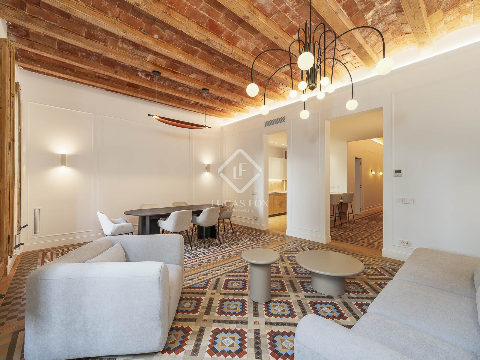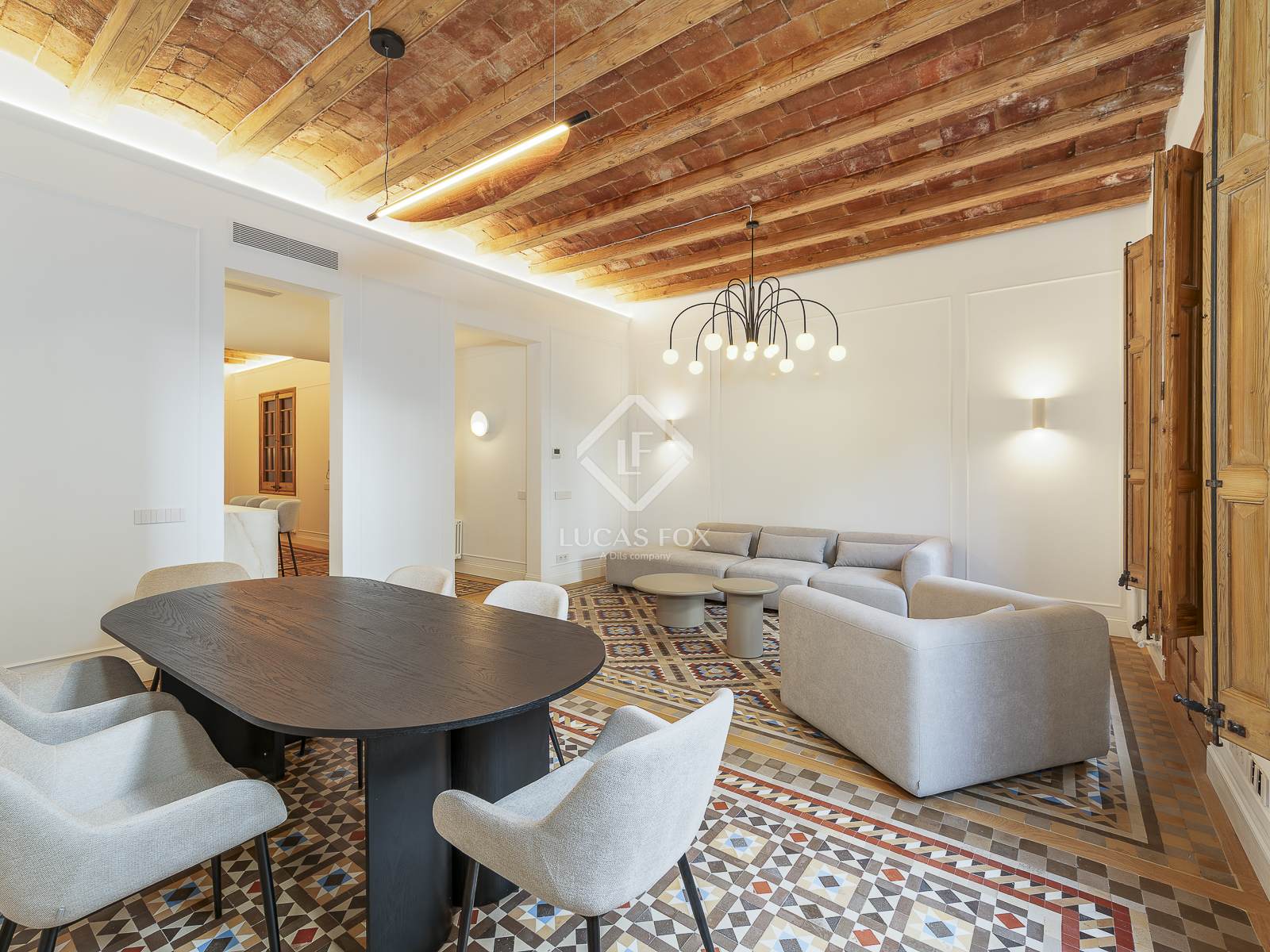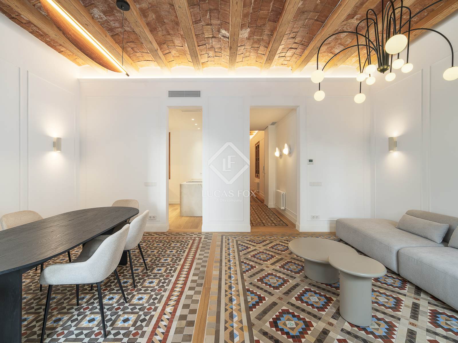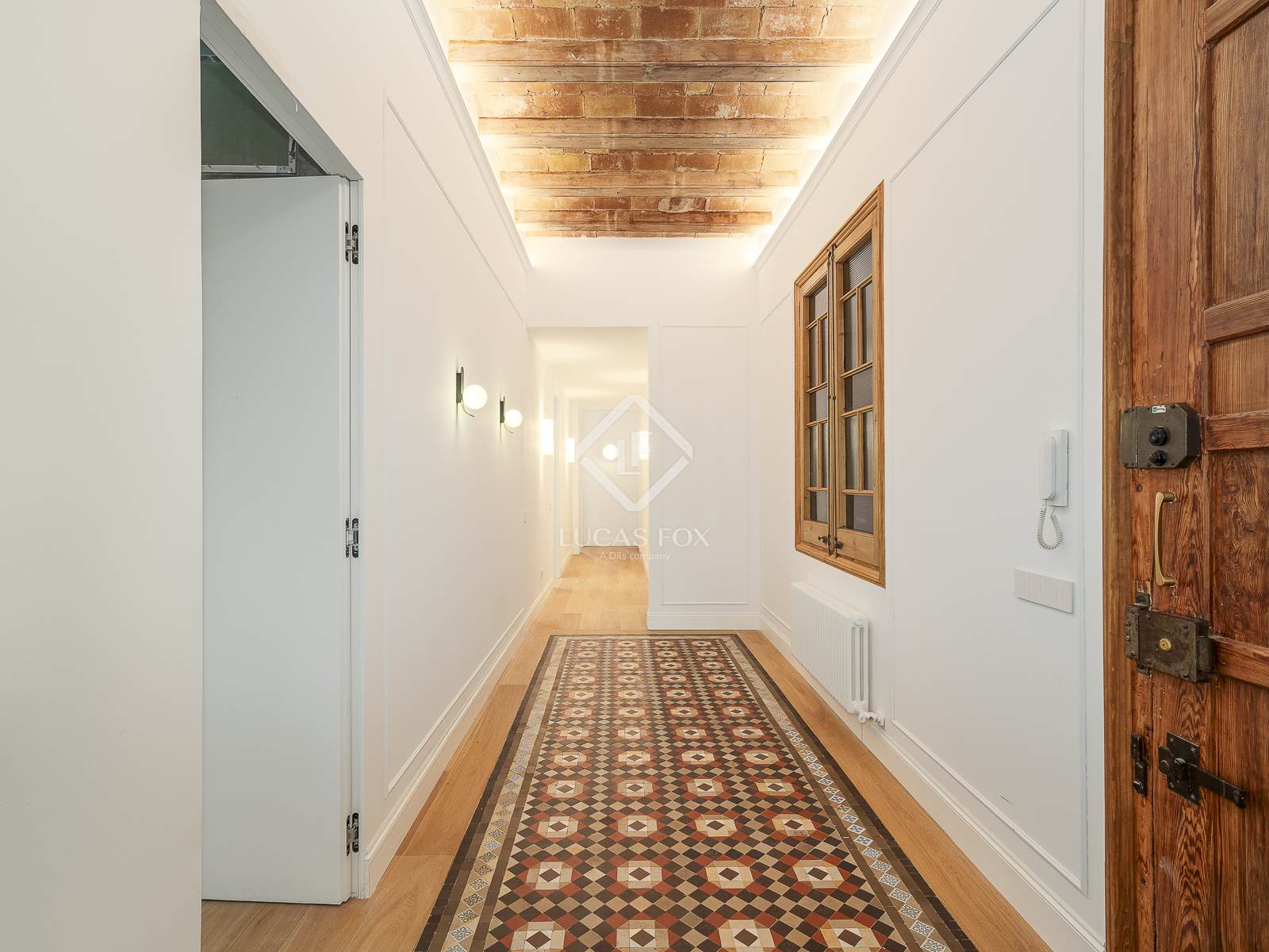 Spanning a generous floor plan, the residence boasts three spacious bedrooms and three and a half meticulously designed bathrooms, ensuring comfort and privacy for all occupants. The interiors are a testament to the city's rich architectural heritage, featuring remarkably high ceilings that enhance the sense of grandeur and light. Original architectural details abound, including the classic Catalan vaulted (Volta Catalana) structures visible in select areas, adding character and a unique sense of history.