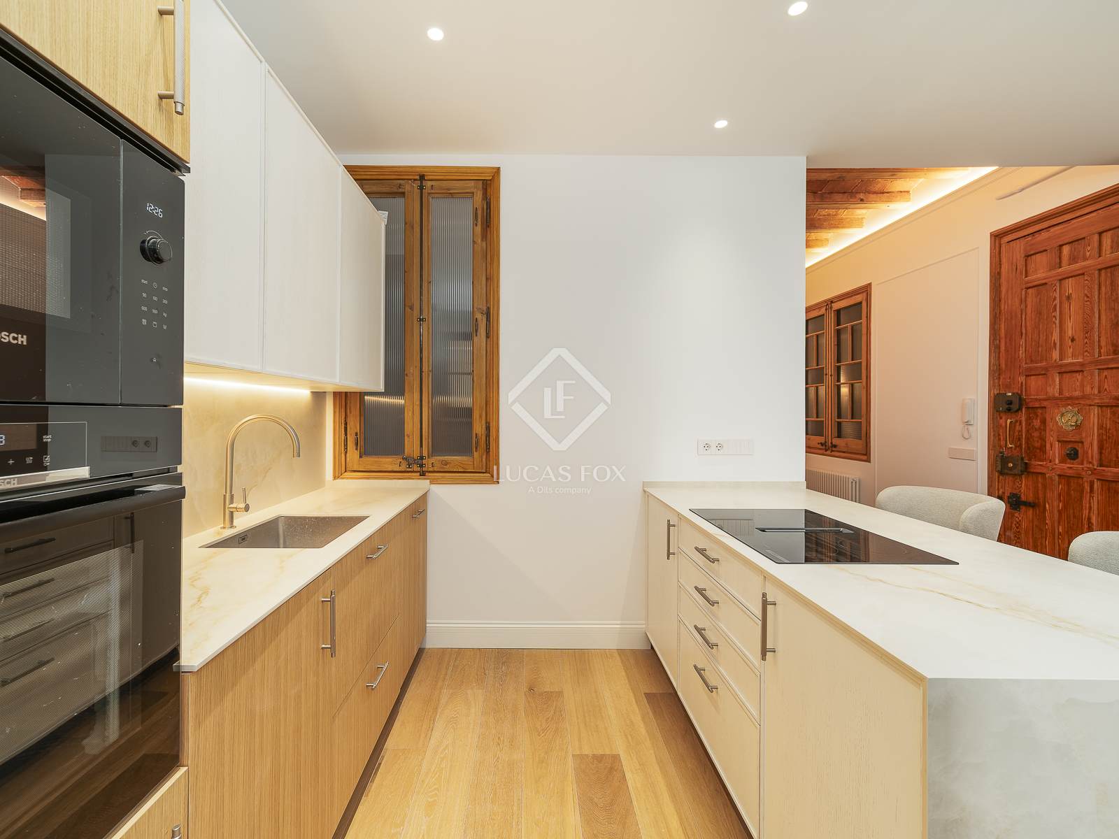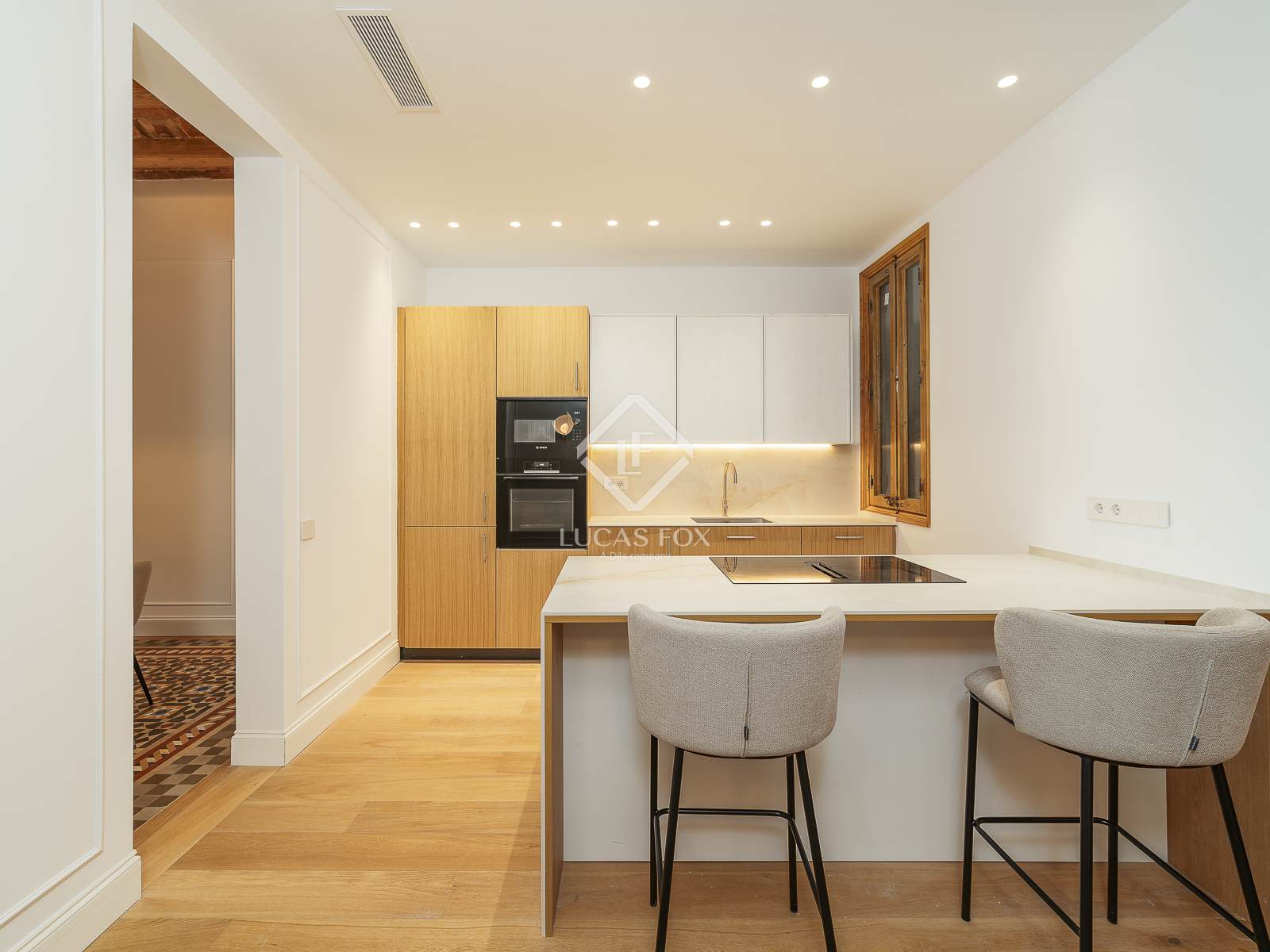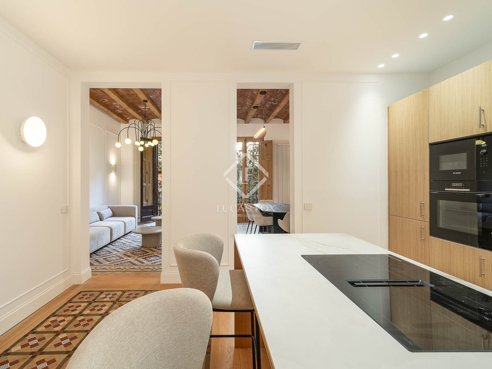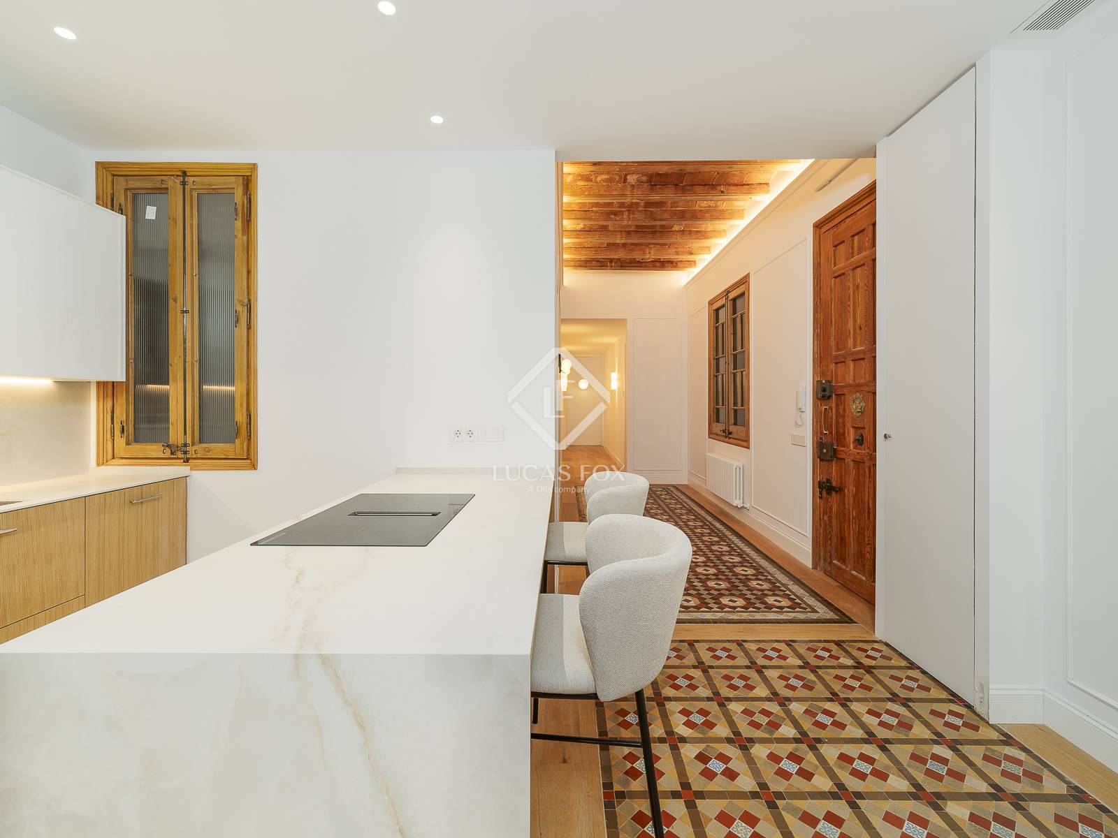 Spanning a generous floor plan, the residence boasts three spacious bedrooms and three and a half meticulously designed bathrooms, ensuring comfort and privacy for all occupants. The interiors are a testament to the city's rich architectural heritage, featuring remarkably high ceilings that enhance the sense of grandeur and light. Original architectural details abound, including the classic Catalan vaulted (Volta Catalana) structures visible in select areas, adding character and a unique sense of history.