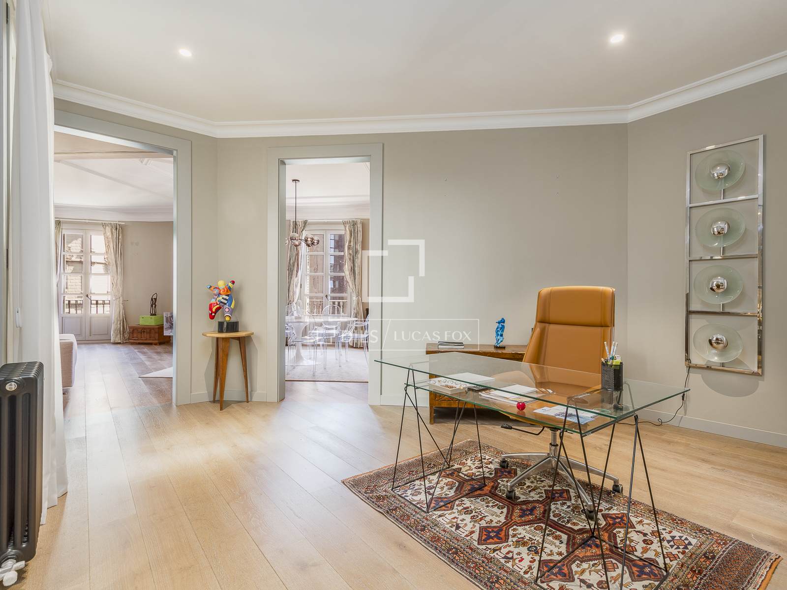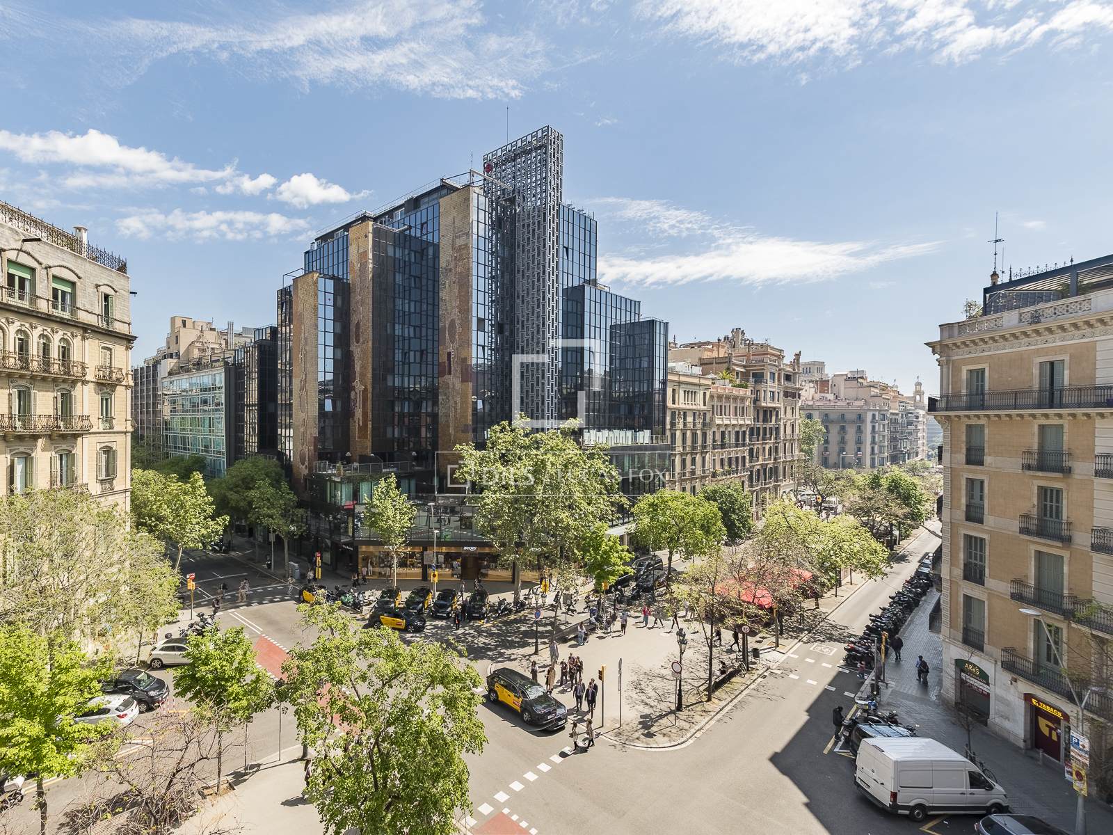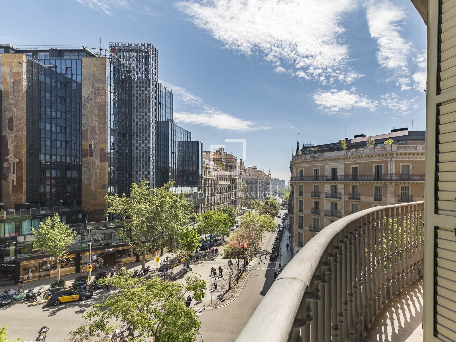 Fabulous 200 m² apartment with three corner balconies overlooking the Rambla Catalunya. It features 3 bedrooms and 3 bathrooms, an inner terrace facing the double bedrooms, and a modern open-plan kitchen and an office space.