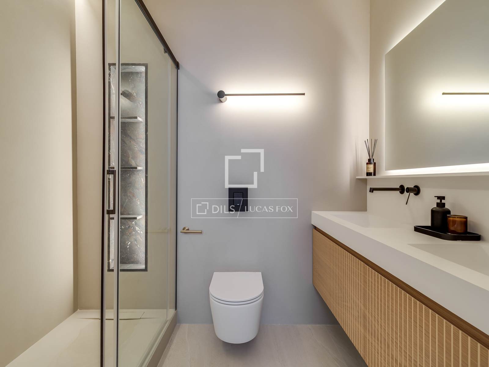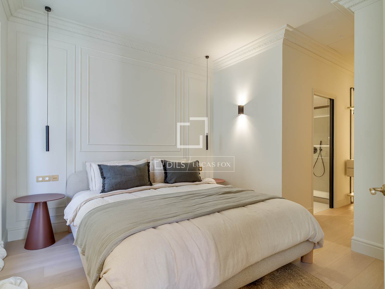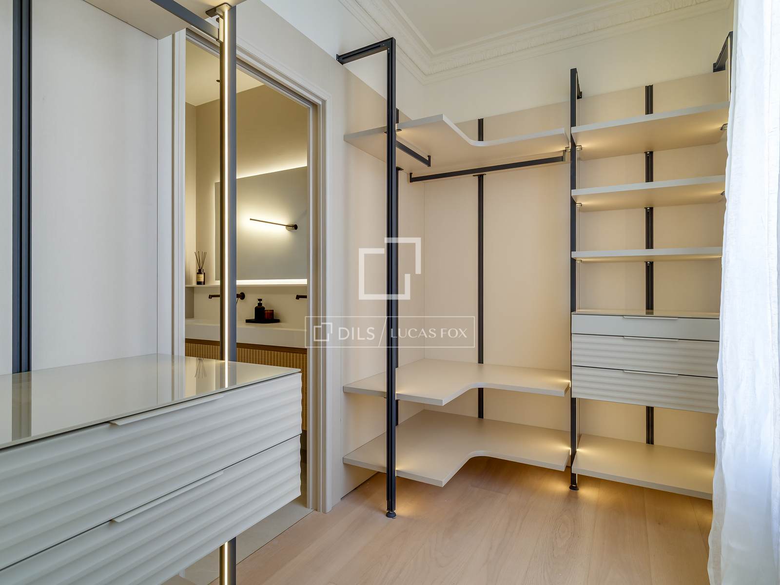 • Custom-made wardrobes with integrated lighting.
