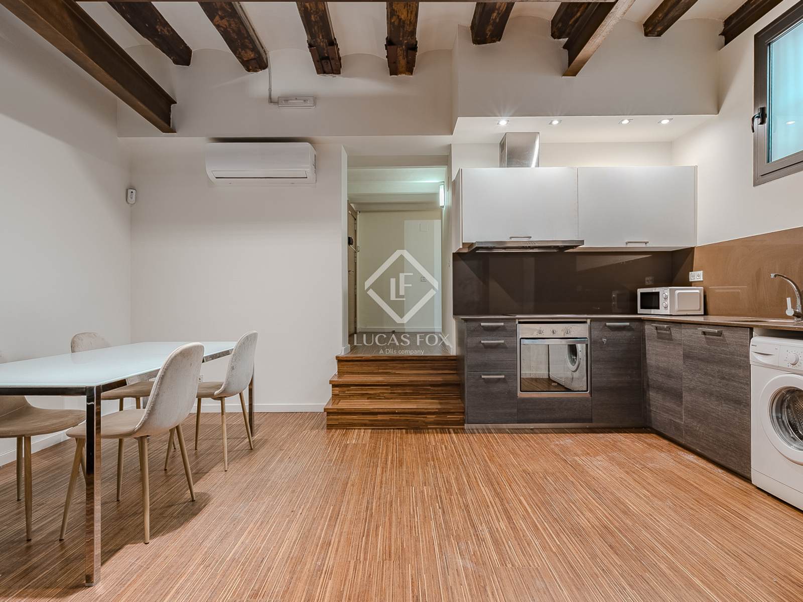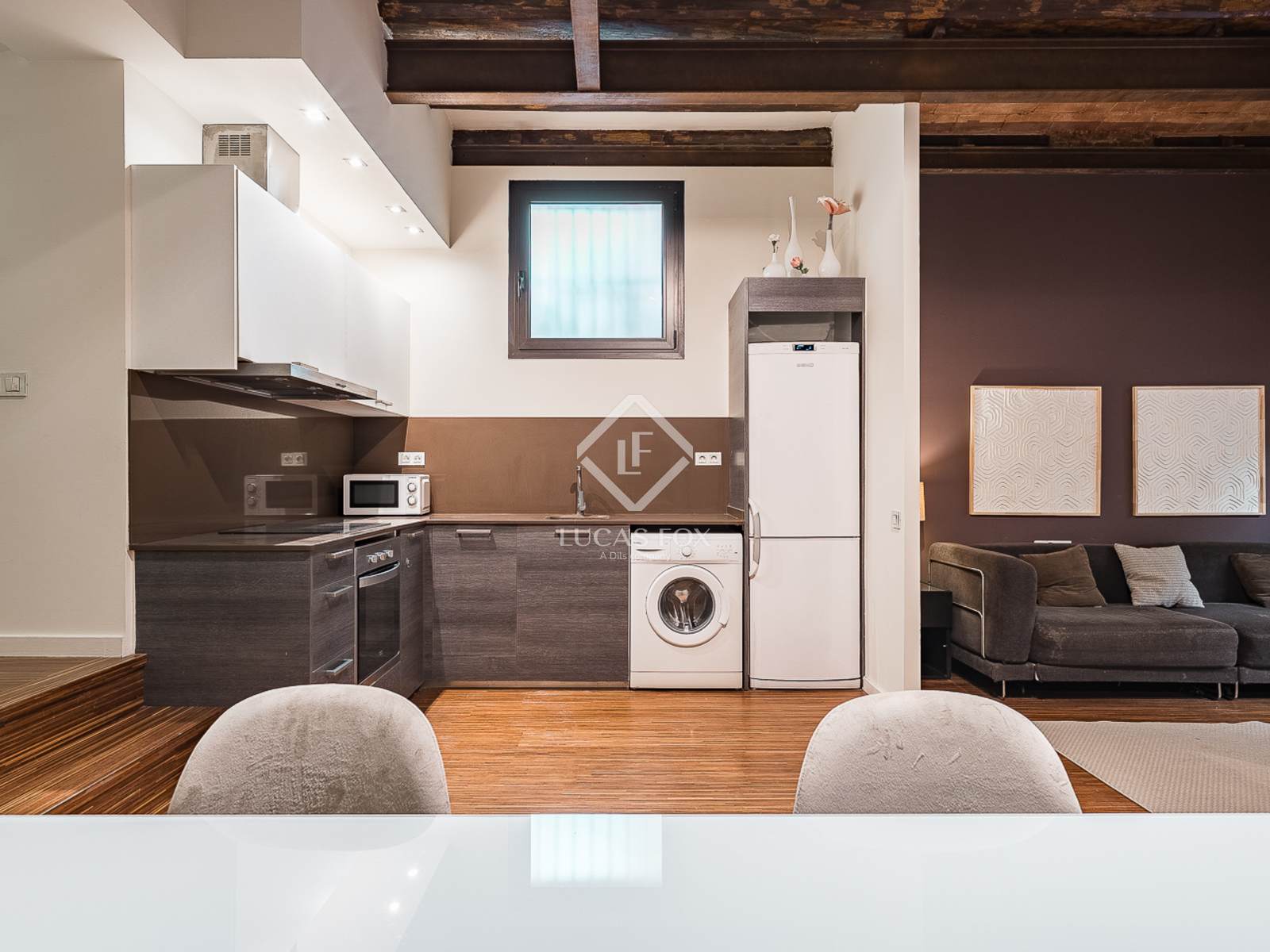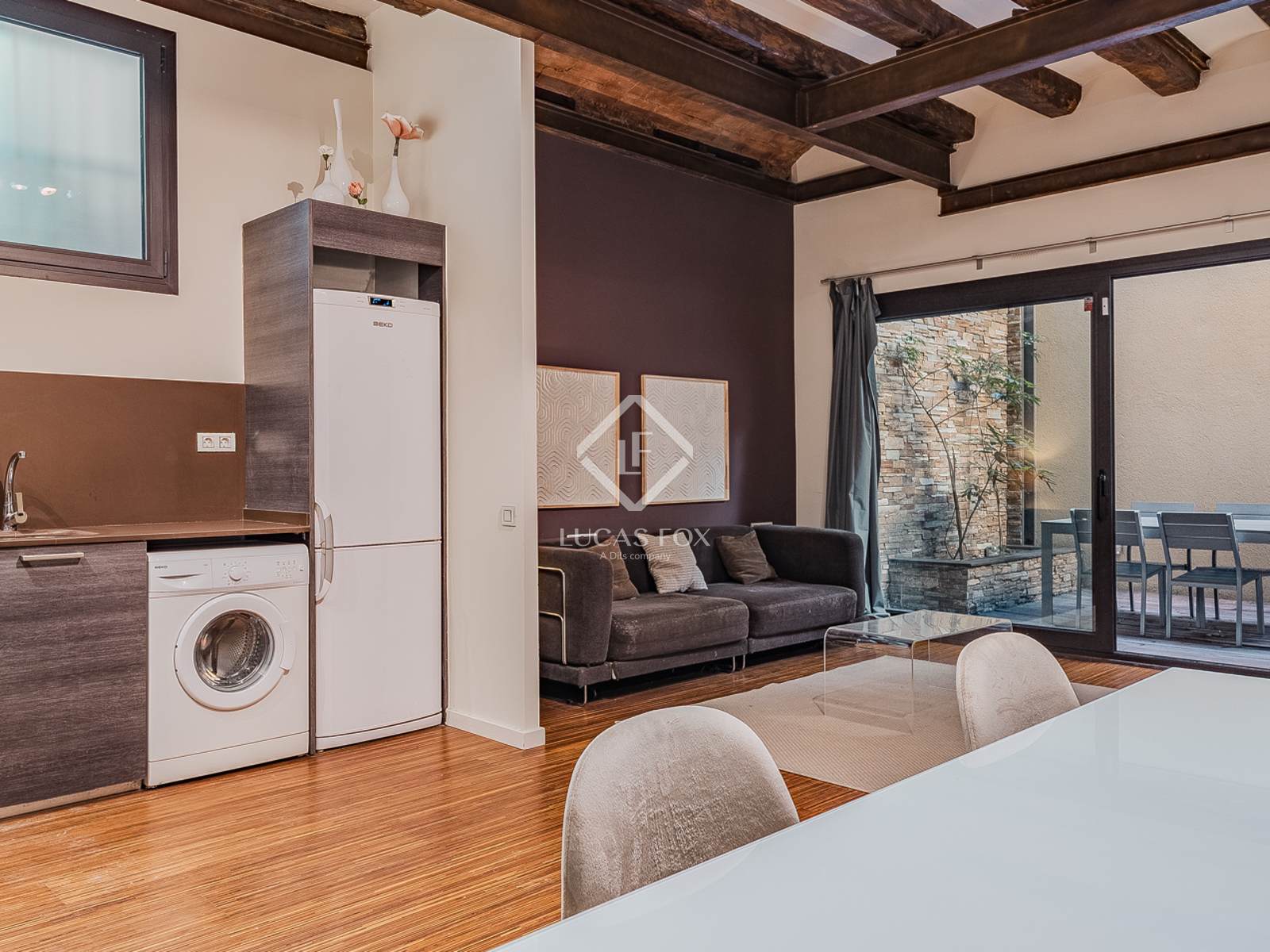 Beautifully designed to balance style and functionality, the apartment features a spacious living area, a well-appointed bedroom, and a stylishly designed bathroom. The thoughtful layout maximizes natural light and creates an open, inviting atmosphere, making the space both practical and elegant. One of its most valuable highlights is the private 10 m² terrace, a rare find in the city centre, offering a tranquil outdoor oasis perfect for al fresco dining, morning coffee, or simply relaxing in Barcelona's Mediterranean climate.