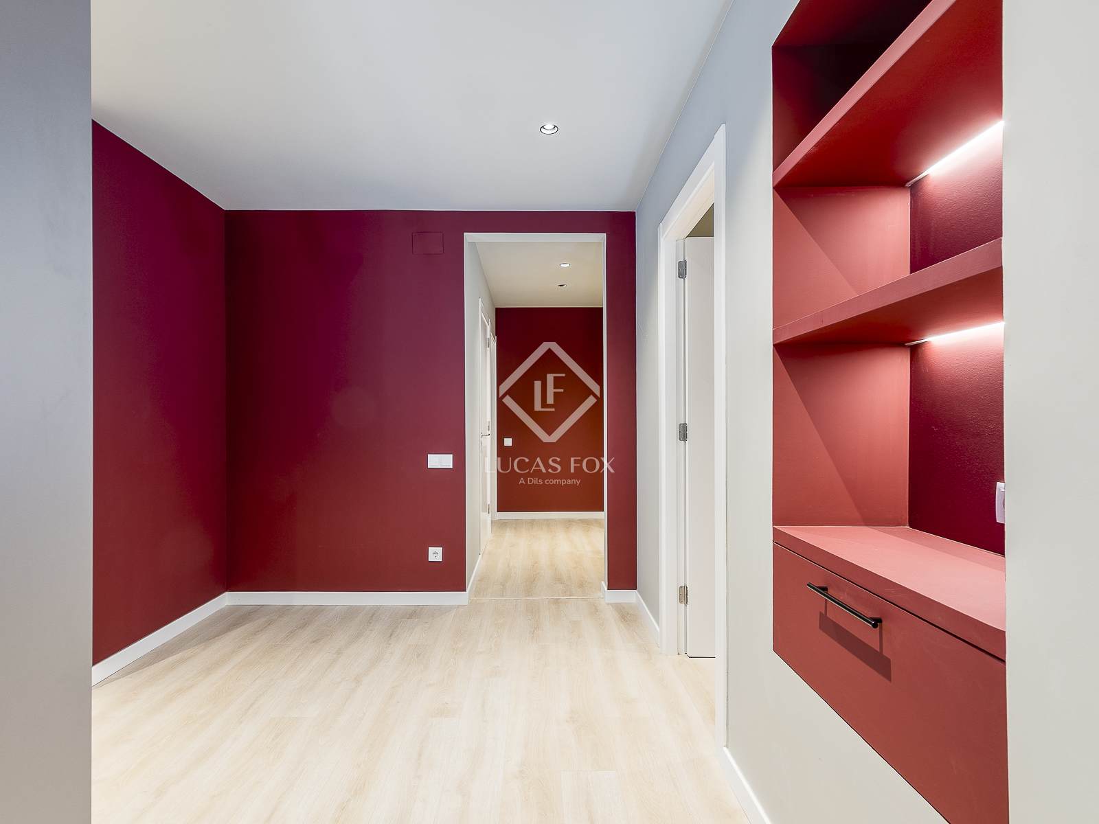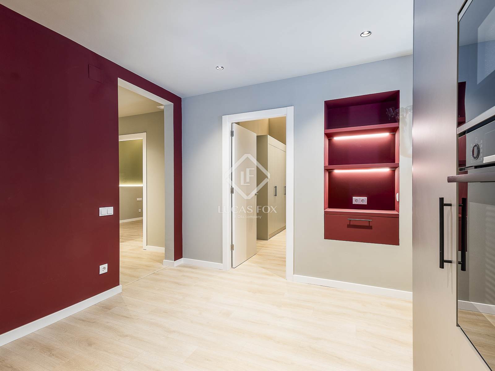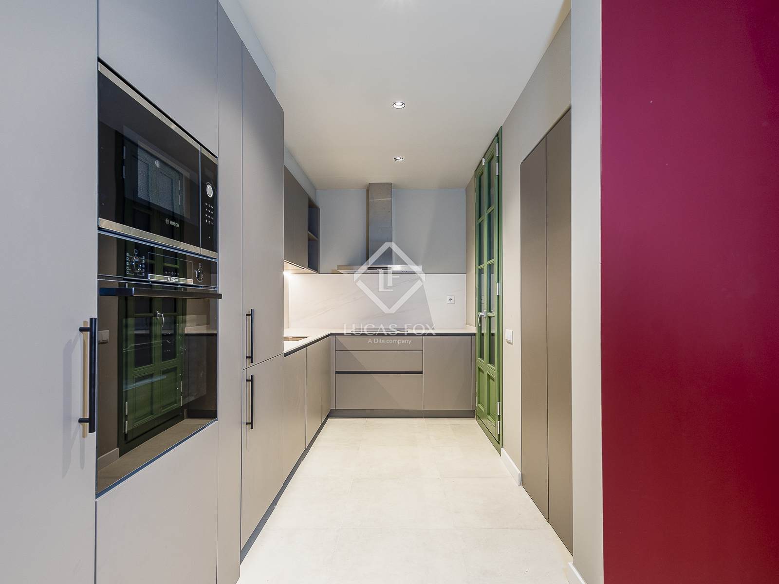 A renowned architectural study has renovated the property, taking great care of every detail and creating functional and elegant spaces. The kitchen, equipped with high-end appliances , includes an original burgundy breakfast area that breaks away from the traditional palette, providing a modern and sophisticated touch. It also features a practical integrated laundry area and access to a small courtyard that ventilates both the kitchen and the interior bedroom .