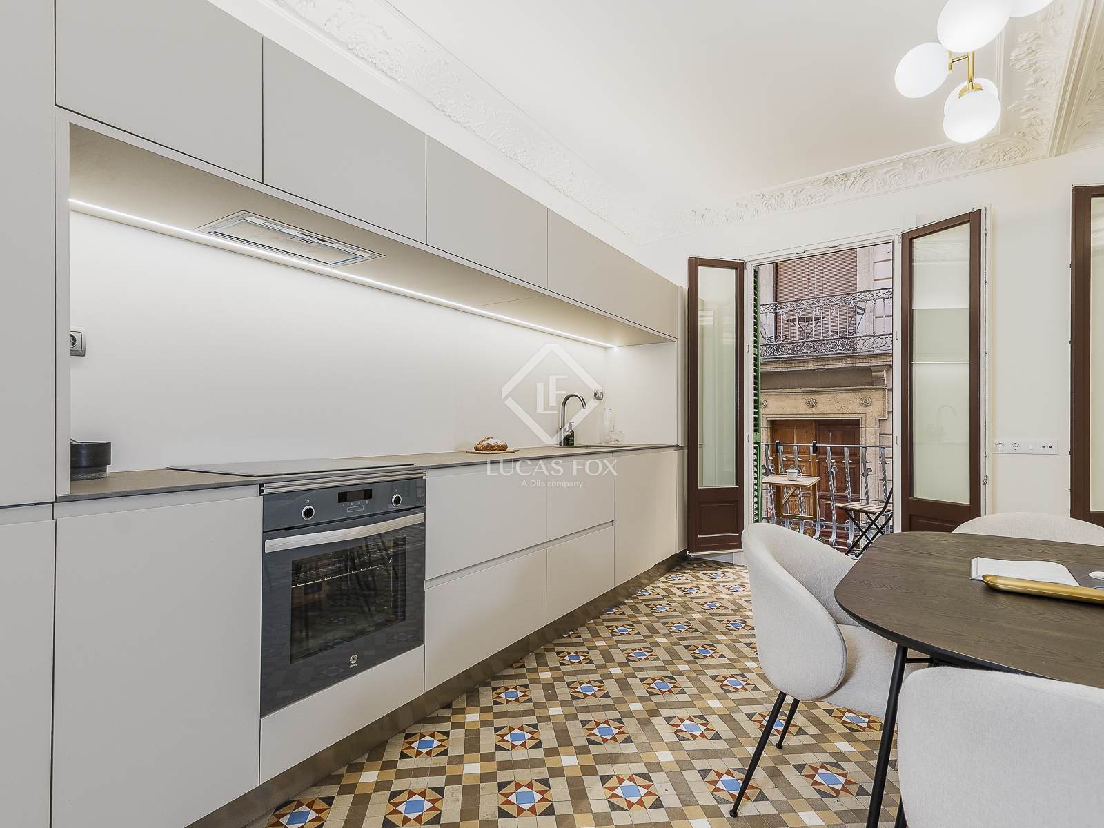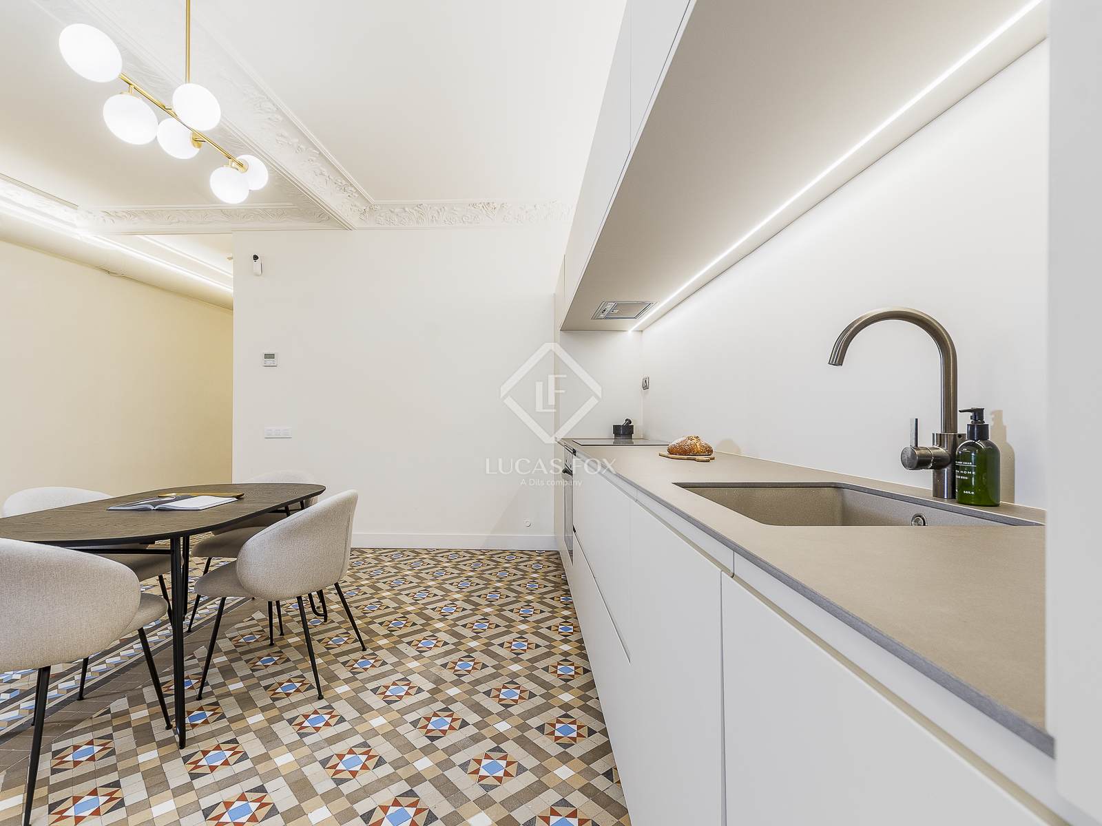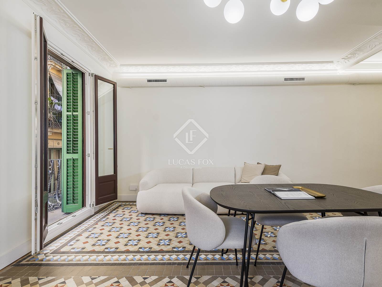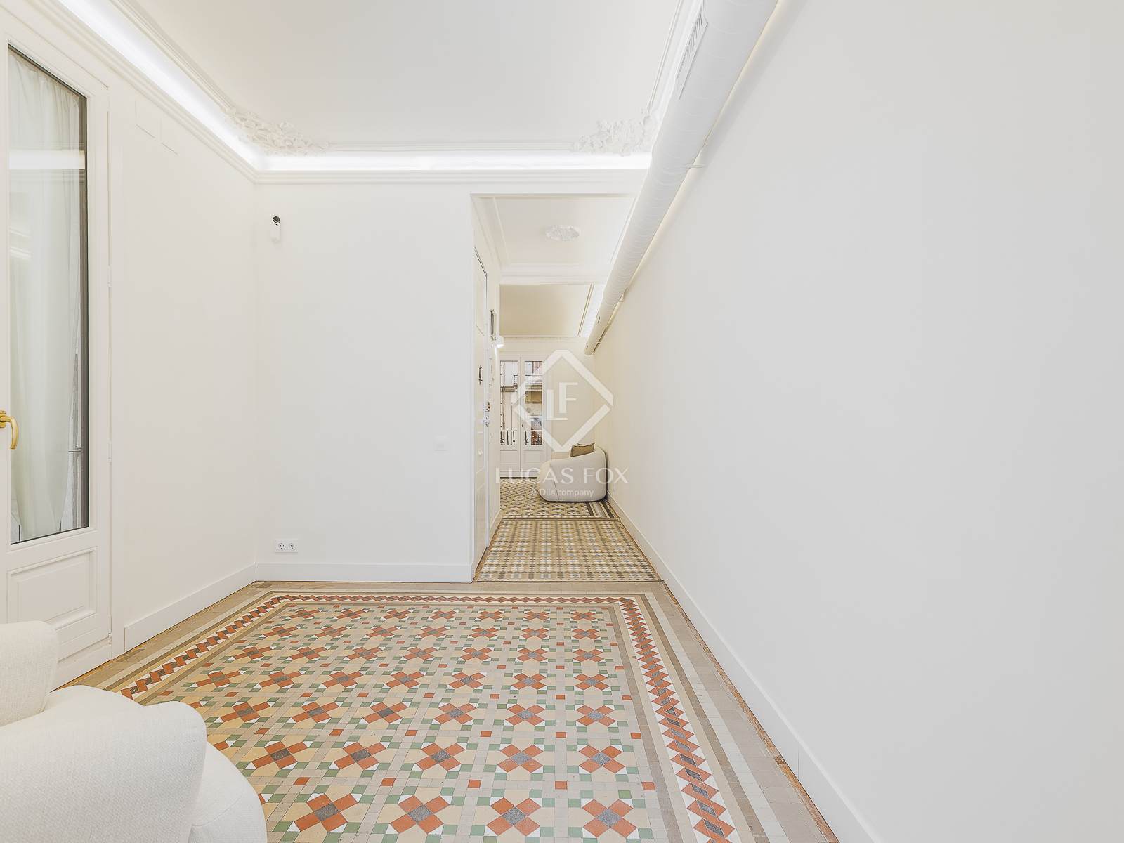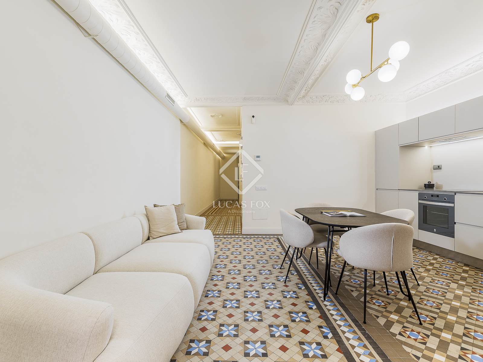 Newly renovated apartment with a unique style inspired by Casa Burés, where modernist elegance blends with contemporary comfort. With a surface area of 77 m² according to a recent floor plan, this property stands out for its thoughtful layout and high-quality design.