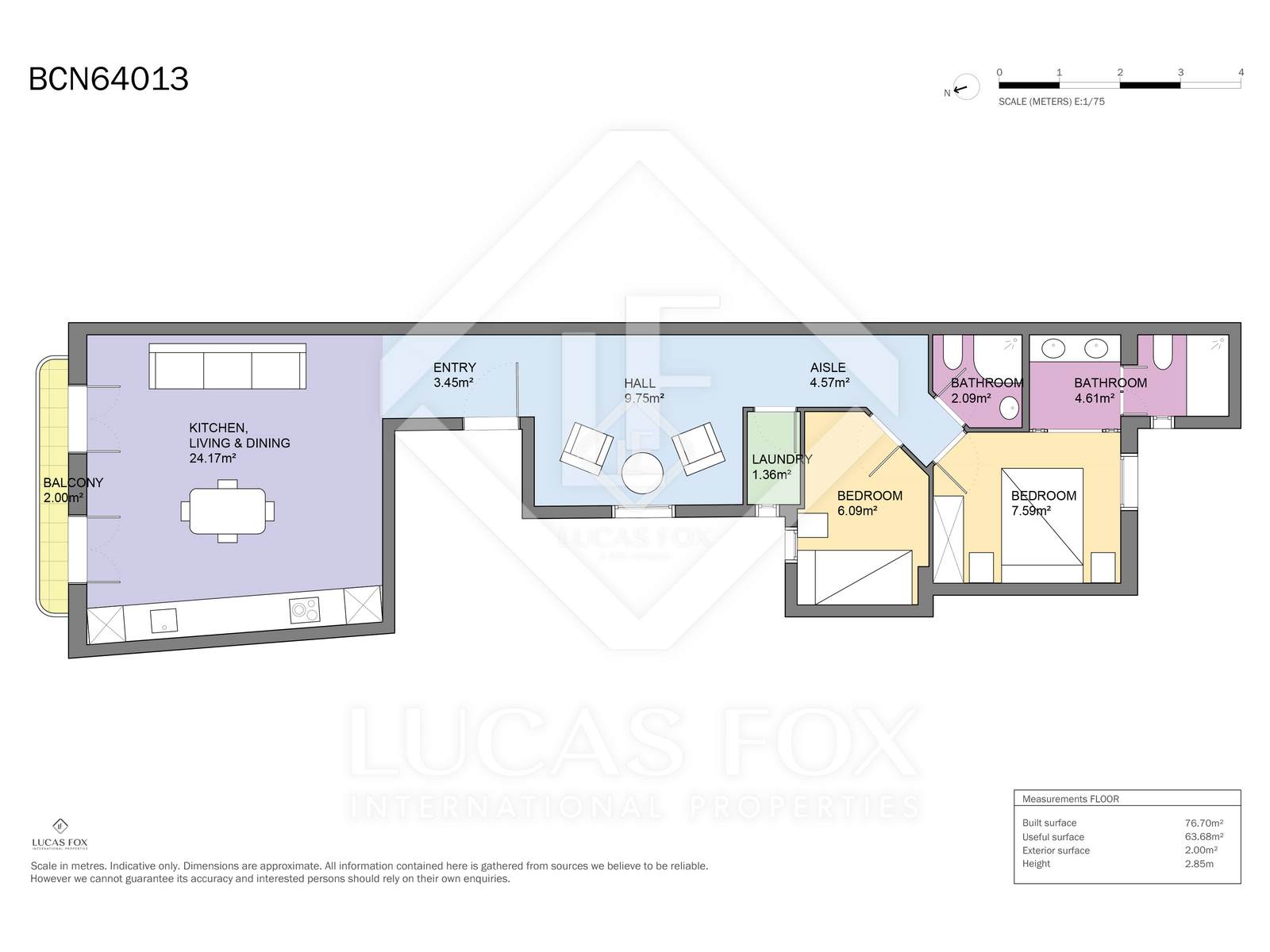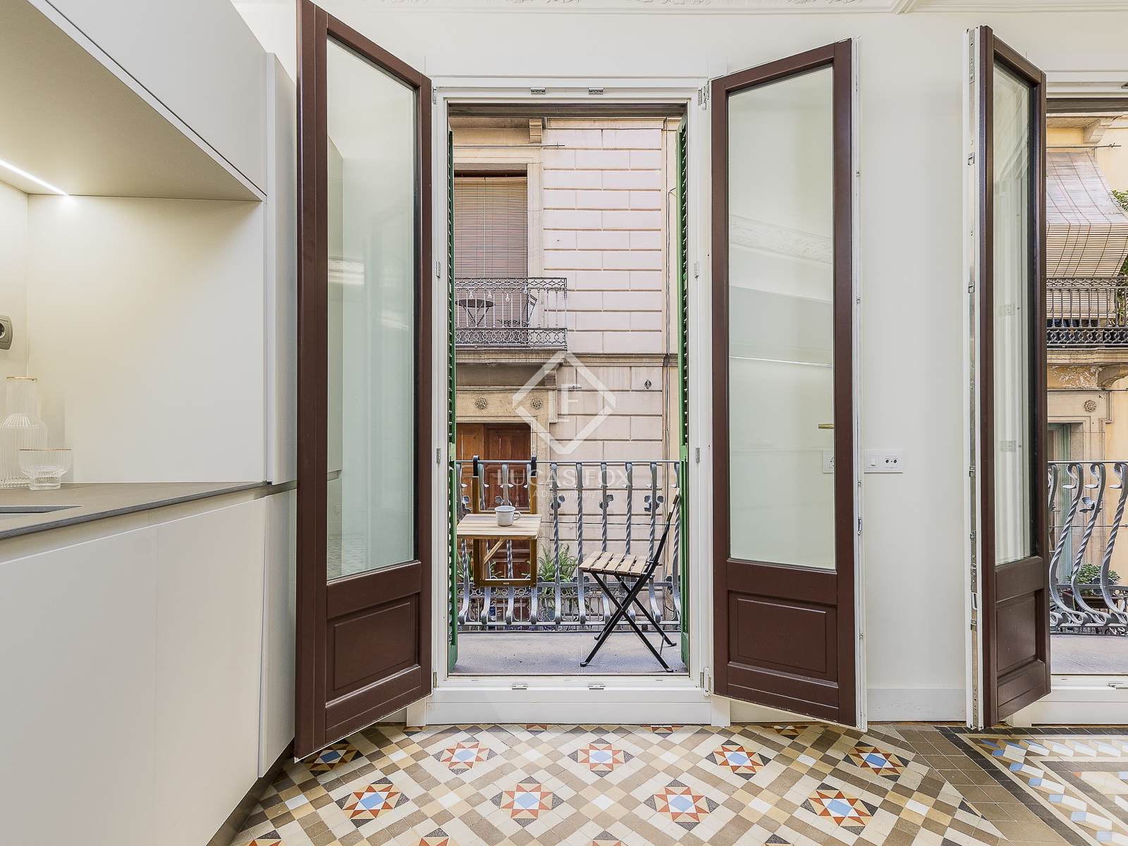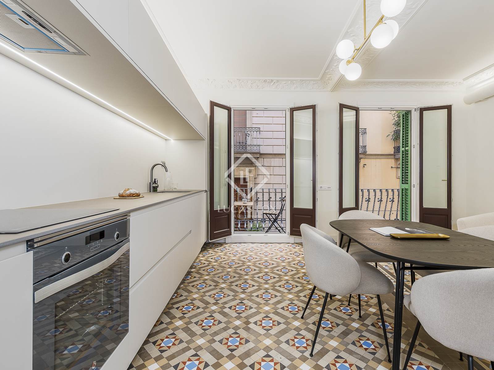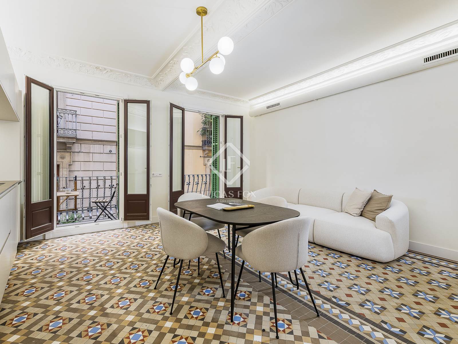 Newly renovated apartment with a unique style inspired by Casa Burés, where modernist elegance blends with contemporary comfort. With a surface area of 77 m² according to a recent floor plan, this property stands out for its thoughtful layout and high-quality design.