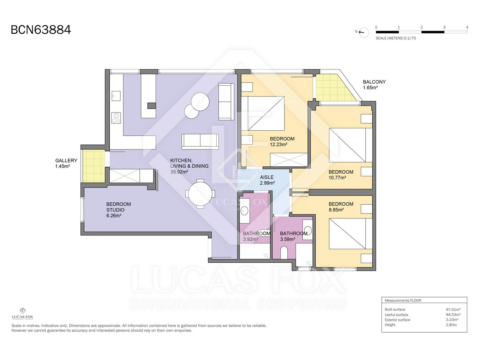 The night area consists of two bright, exterior-facing double bedrooms with direct access to the small private balcony, plus an interior-facing single bedroom . The property has two complete bathrooms, both with high-end finishes and details that add distinction.