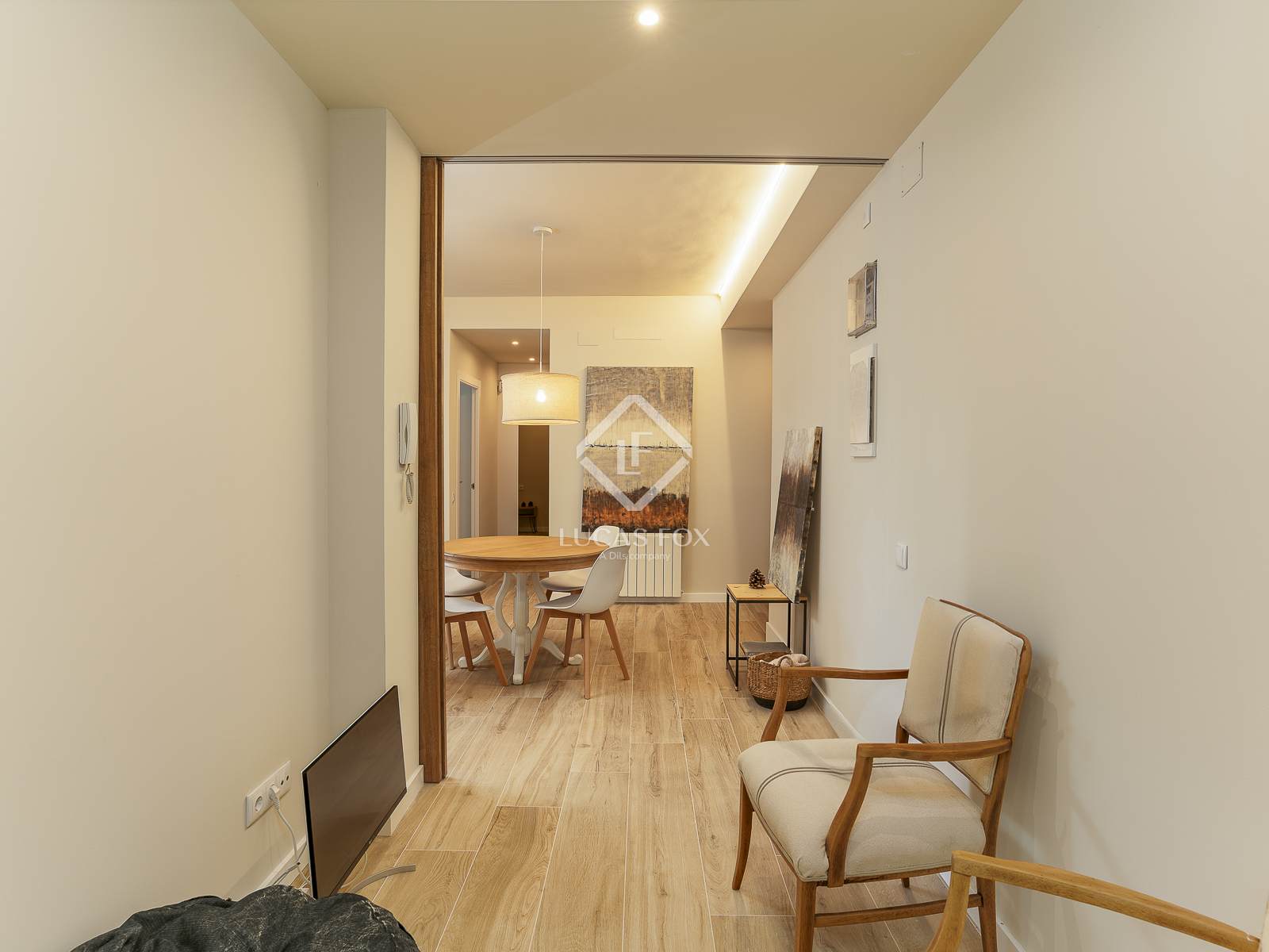 The property, located in a modern building on one of Barcelona's most iconic and sought-after streets, offers a spacious and welcoming exterior living dining room living room , bright and tranquil, notable for its large windows that allow abundant natural light to enter throughout the day. The layout has been designed to maximize the available space, creating a unique, elegant and sophisticated atmosphere. Fine materials, neutral tones, and subtle lighting create a serene and contemporary atmosphere. The open, metropolitan-style, fully equipped kitchen also features a practical utility area and blends seamlessly into the space, creating a open-plan atmosphere. Additionally, next to the kitchen, there is a comfortable multipurpose room with multiple uses: a guest room, an study, a relaxation area, or an extension of the dining room for family gatherings.