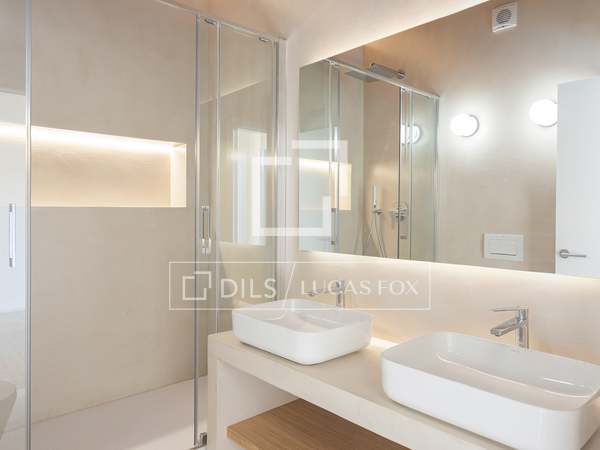Upon entering, we find the spacious living-dining room with an open-plan kitchen, with access to a balcony. To the right, there is a bedroom and a bathroom, perfect for guests, and to the left, there is the main bedroom with its private bathroom and dressing room. Both bedrooms have access to a huge terrace with a chill-out area and exterior dining room .