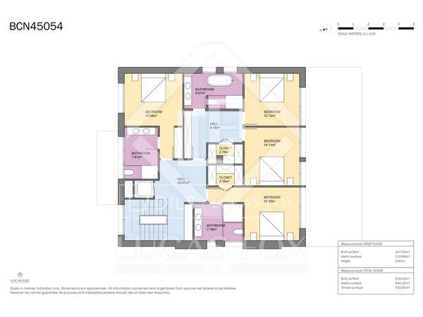 The property is located very close to the best international schools in the city. In short, in the exclusive upper area of Barcelona, we have this spectacular four-story villa dating from 2002 and with 1,421 m² built and 1,656 m² of gardens on a 2,269 m² plot.