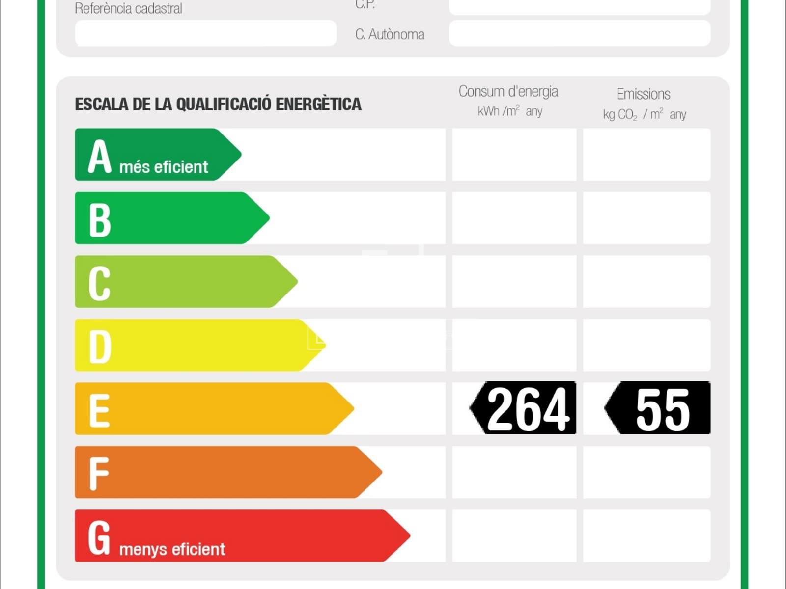 Energy consumption E : 264kWh/m²/year