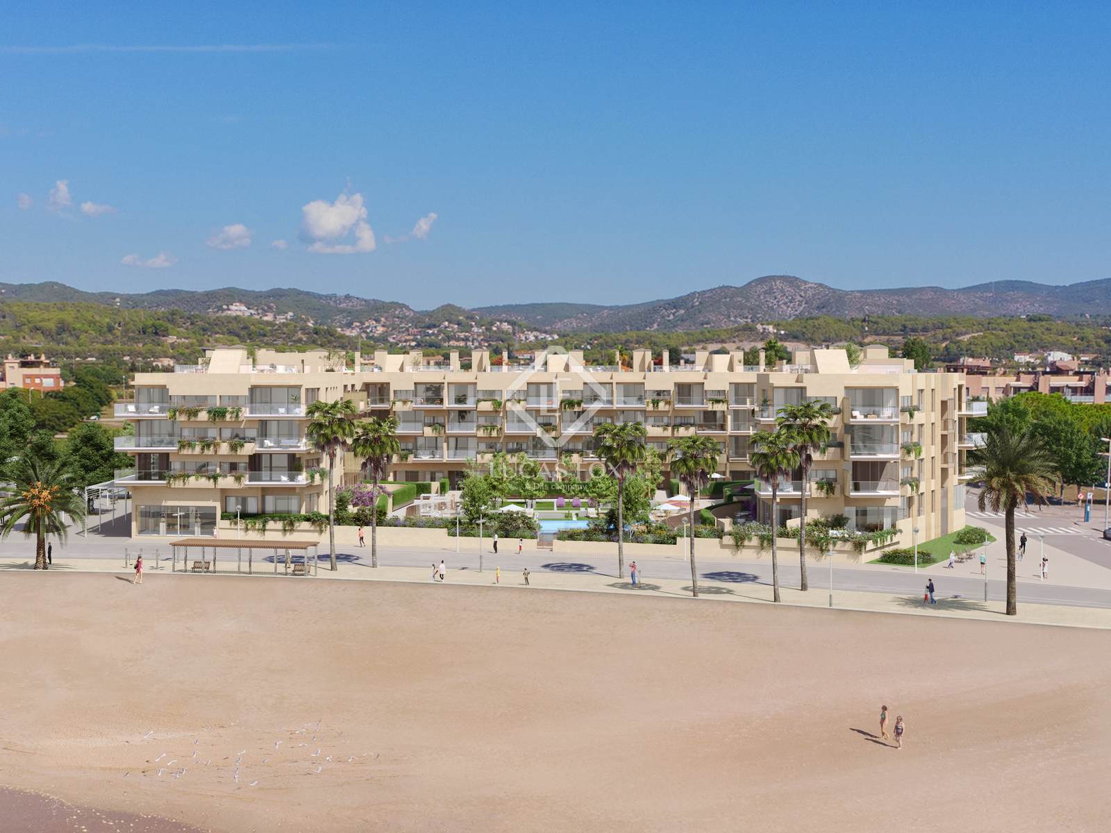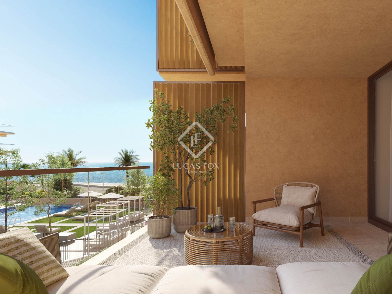 New build apartment on the second floor and first line of the beach, with three bedrooms, 10 m² terrace, garage, pool and communal areas.