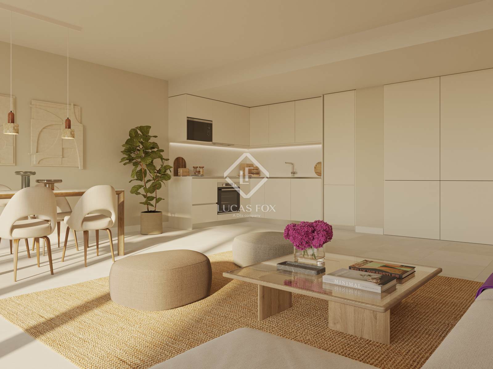 Dune has this new build apartment on the second floor, with a modern design, open-plan rooms that maximize space and decoration in neutral tones for a modern aesthetic.
