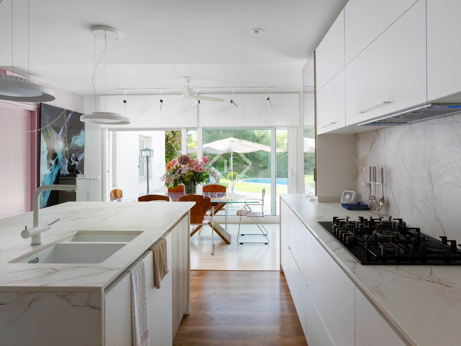 6-bedroom villa for sale on the most exclusive residential street in El Masnou, constructed on a double plot with a large garden and private pool. Walking distance to the town centre