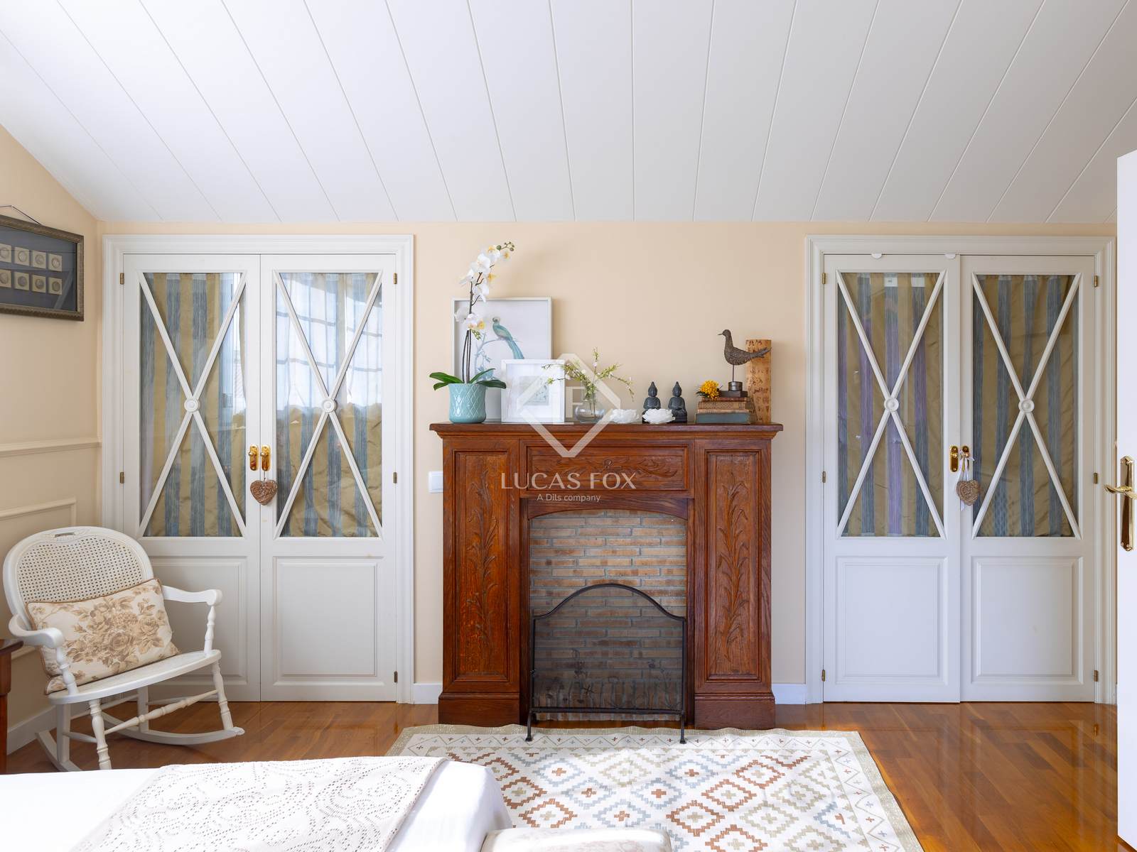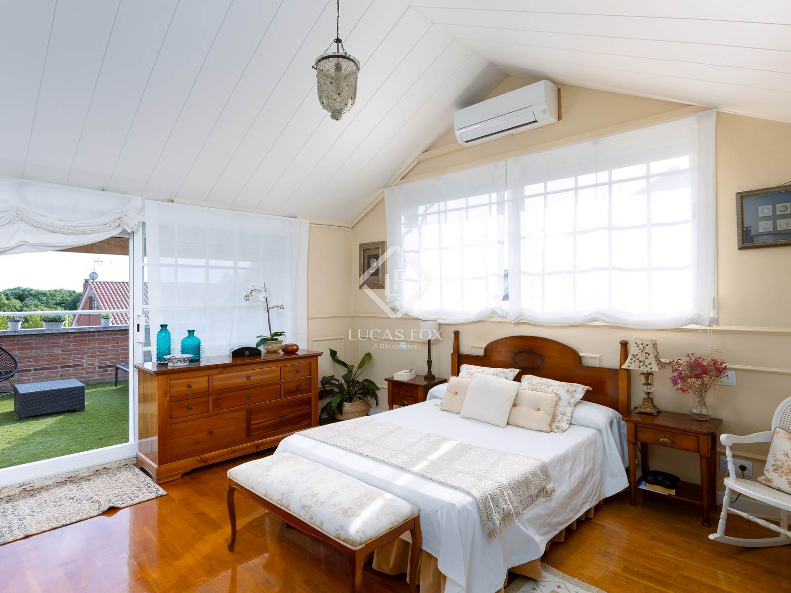 In the attic, we find the spectacular main bedroom with a full bathroom , dressing room, and access to a private terrace.