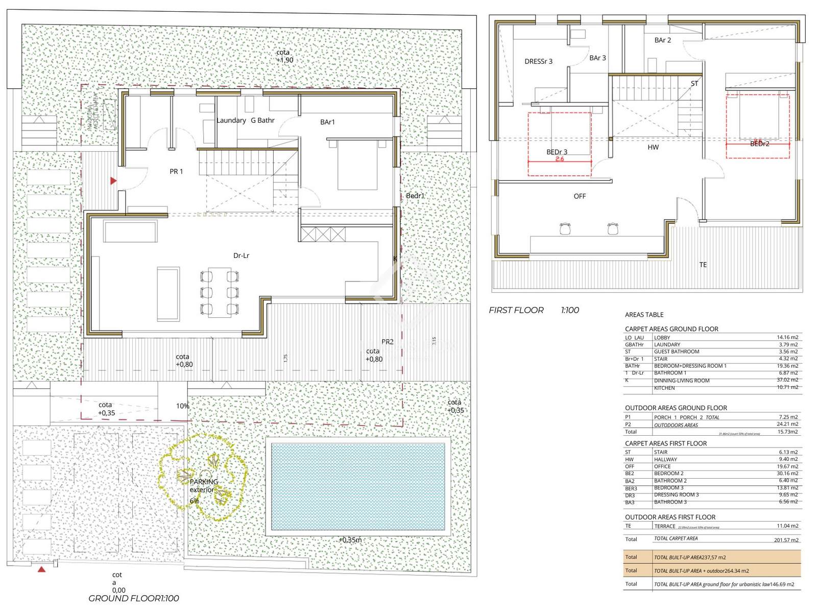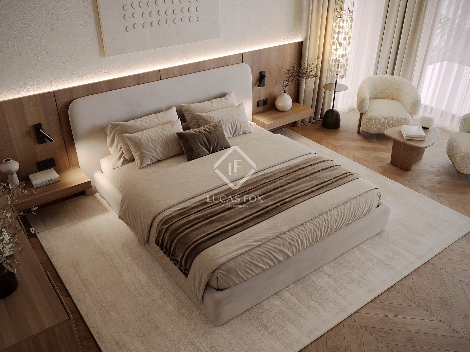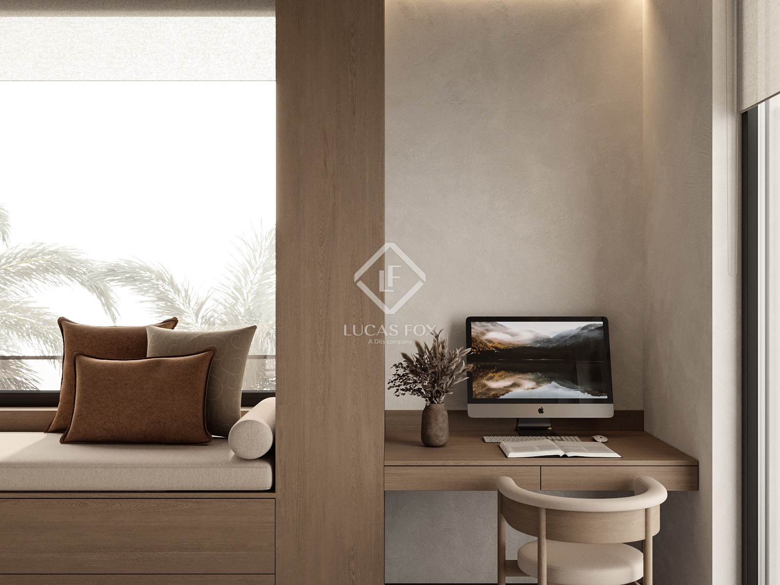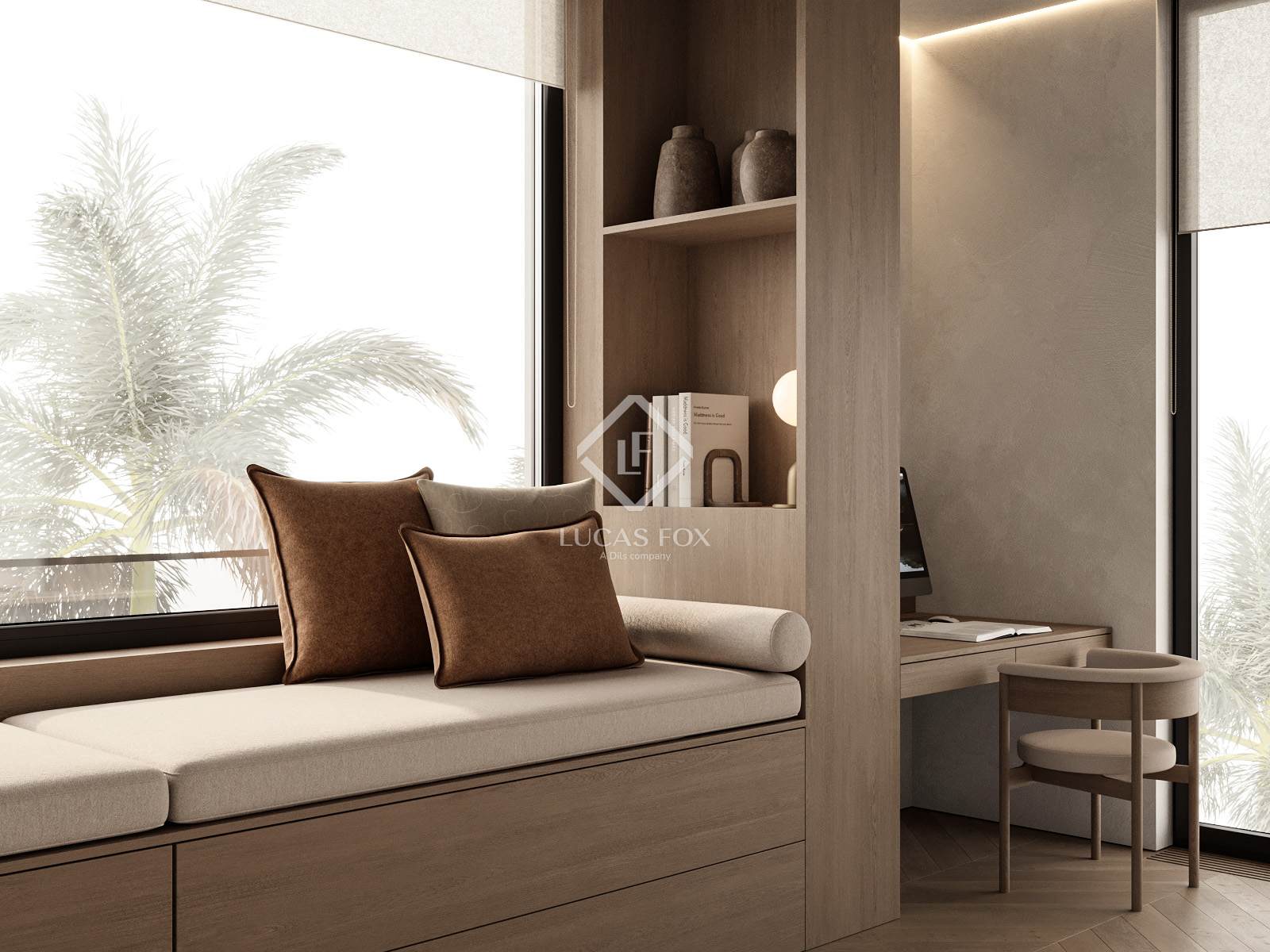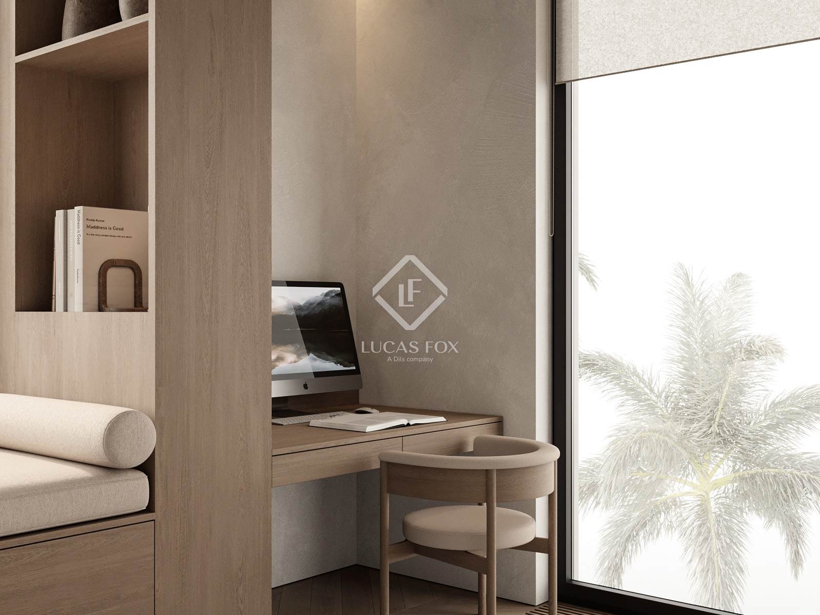The first floor comprises two bedrooms with dressing rooms and en-suite bathroom, as well as a multipurpose space that can be used as a study or bedroom, depending upon the owner's needs. A private terrace is also accessible from this floor .