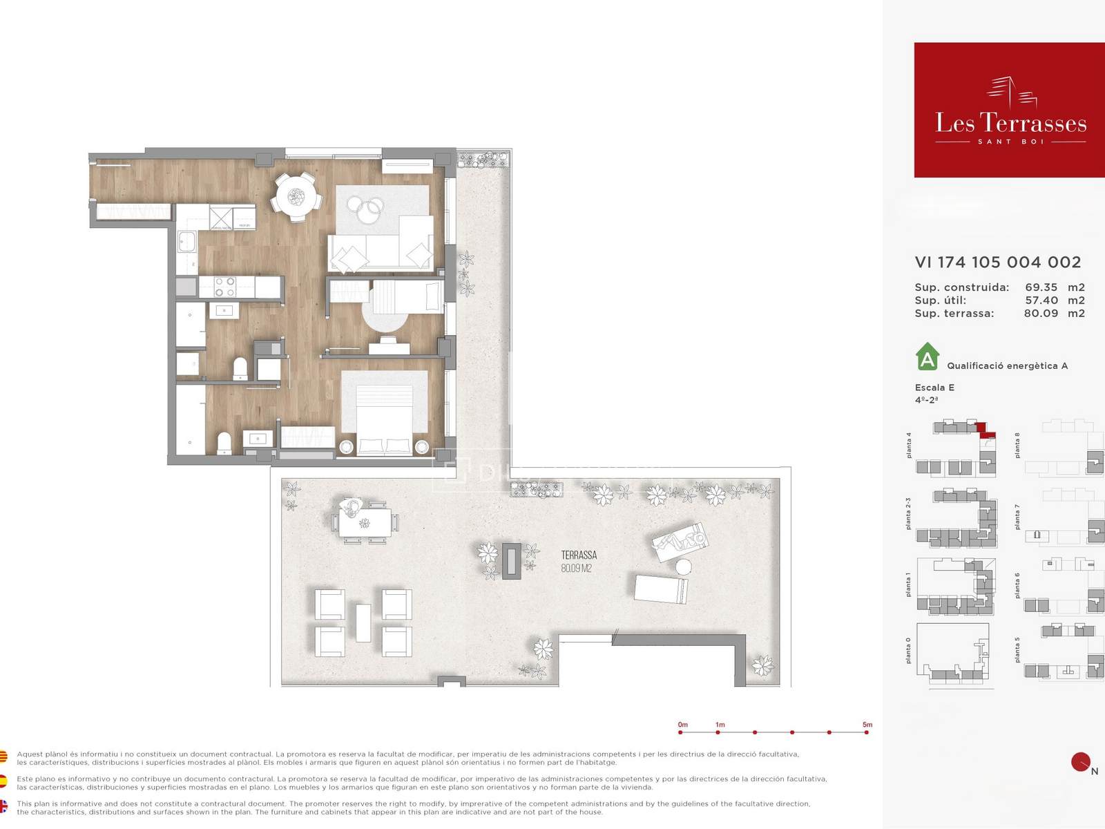 Les Terrasses is a residential community with a full range of communal areas: a swimming pool, gym, relaxation area, pickleball court, multipurpose room, coworking space, and solarium, as well as additional amenities such as a concierge, smart lockers, and garden areas . The development has an A energy rating, thanks to its aerothermics and photovoltaic systems and the use of eco-efficient materials, offering sustainable and environmentally friendly homes.
