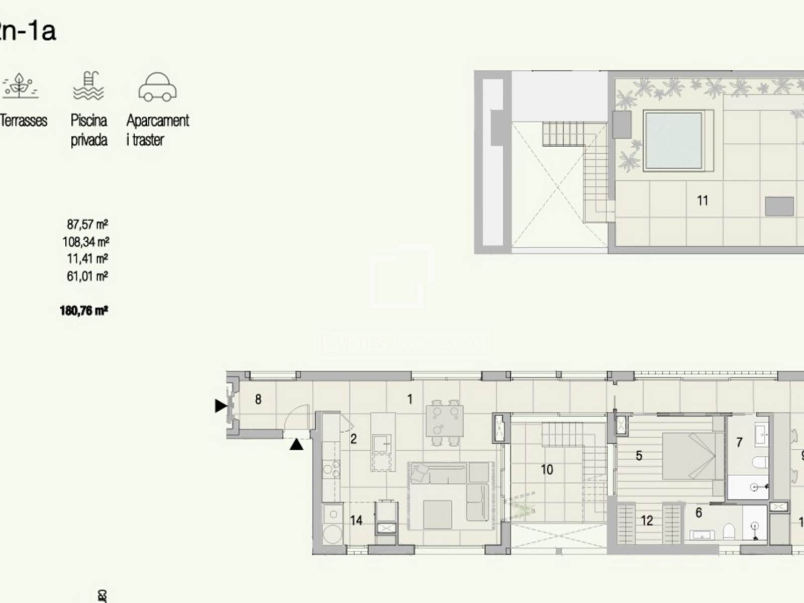 New build duplex penthouse, consisting of 180m2 built, 3 bedrooms, 2 bathrooms, 60m2 terrace, swimming pool and parking, for sale in Sant Cugat del Vallès, Barcelona.