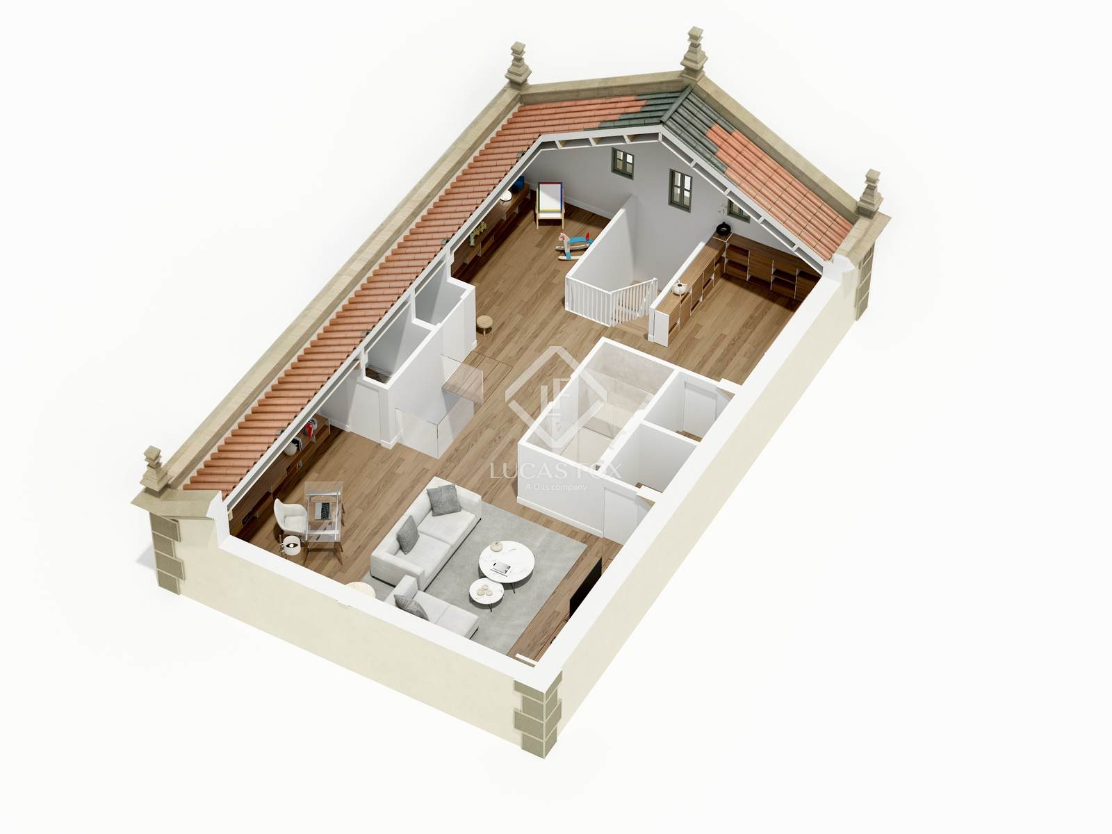 The open-plan attic of 68 m² offers a versatile space filled with natural light, ideal as a loft, studio, or recreation room. It has a full bathroom .