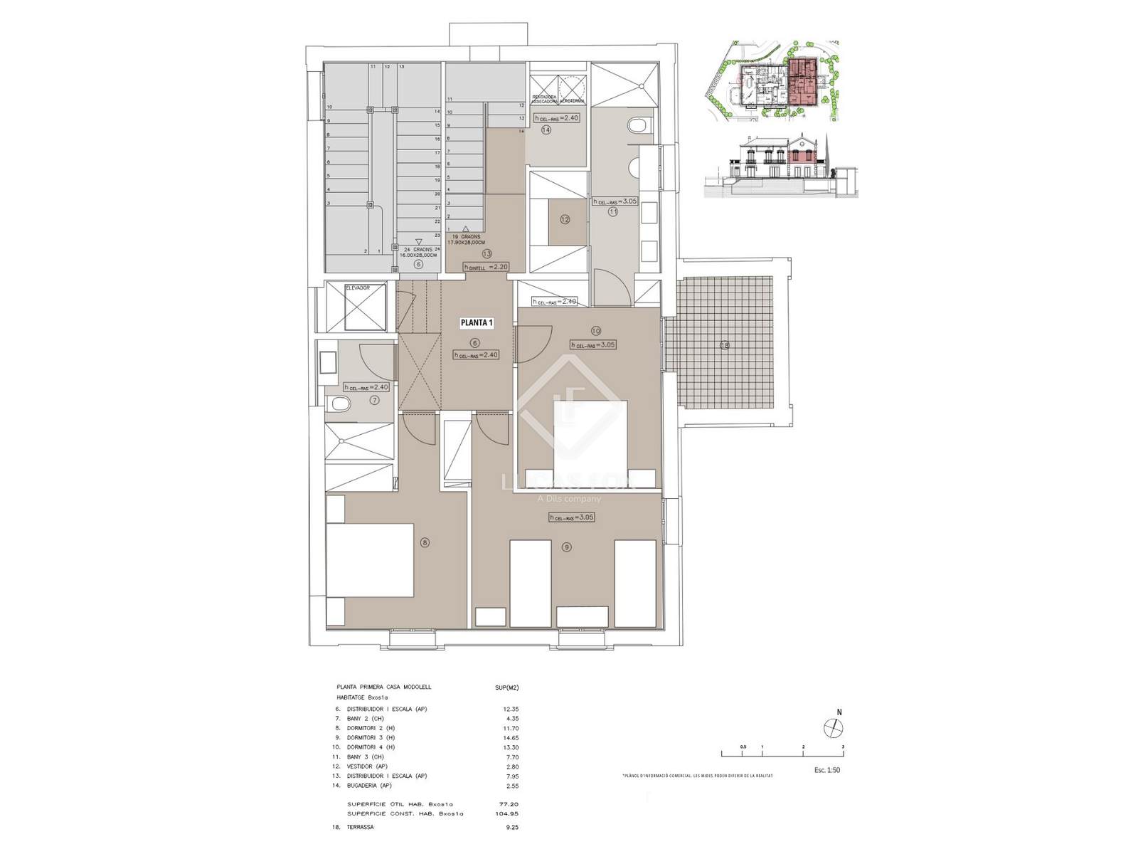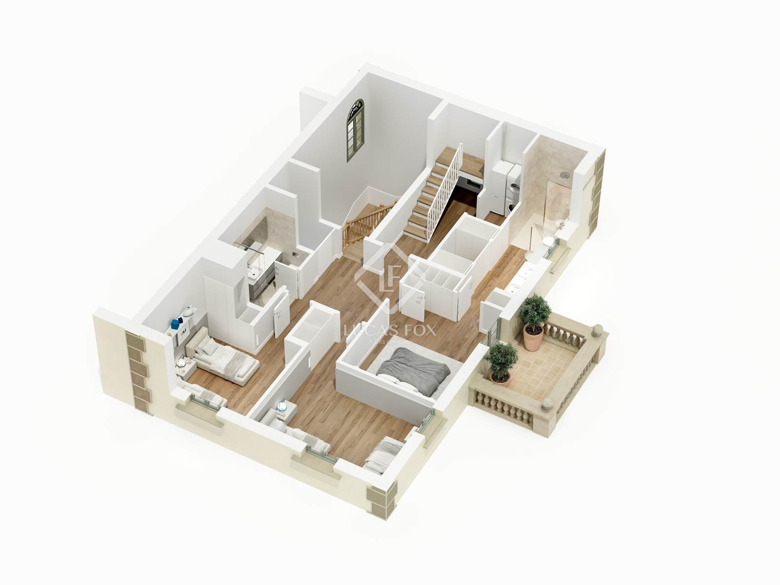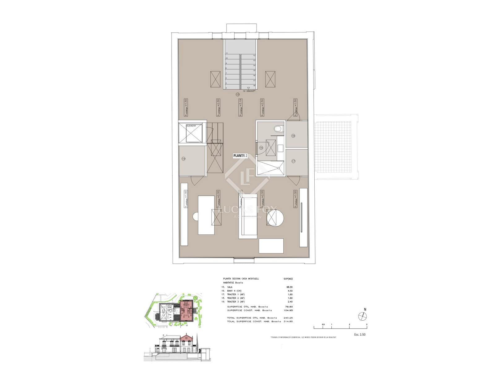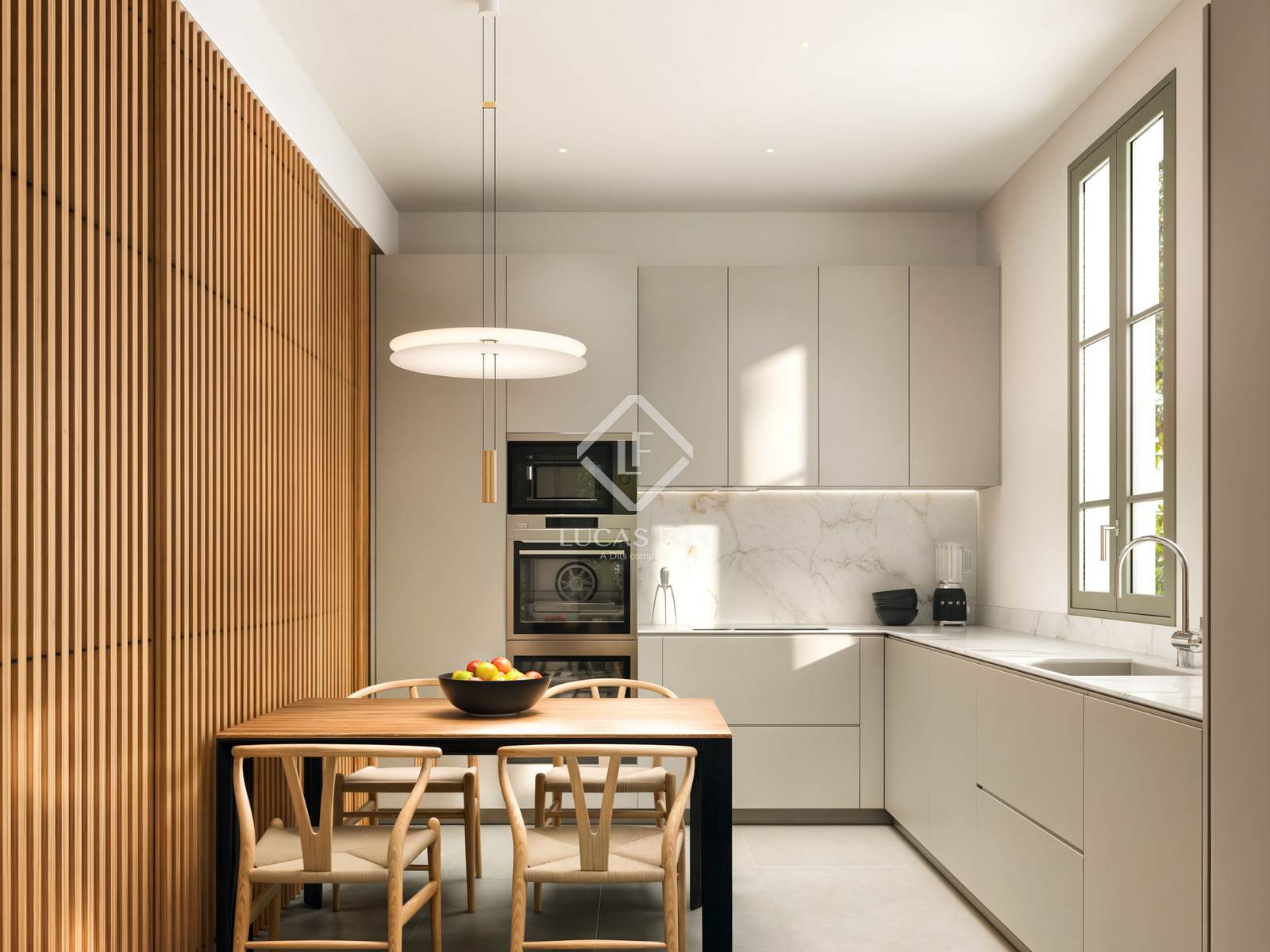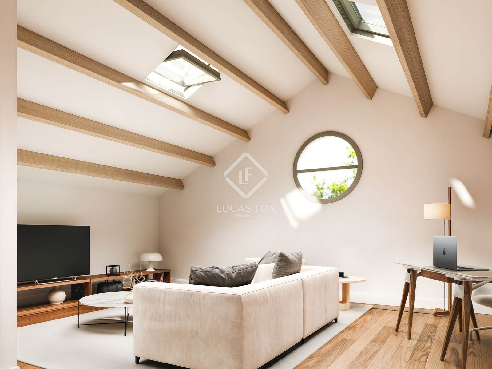 The property is part of Torre de l'Hereu, an exclusive development that blends the modernist essence of the historic Casa Modolell (1911), listed as part of Catalonia's Architectural Heritage, with contemporary architecture featuring clean lines and premium materials. The complex offers only seven unique, high-end residences: three in the refurbished country house and four in a newly constructed building. The residential complex also boasts a beautiful communal garden with a restored central fountain and a swimming pool surrounded by lush vegetation.