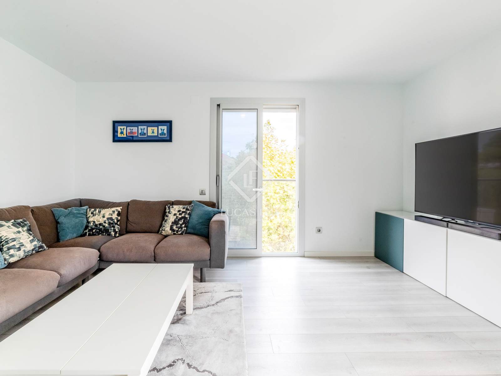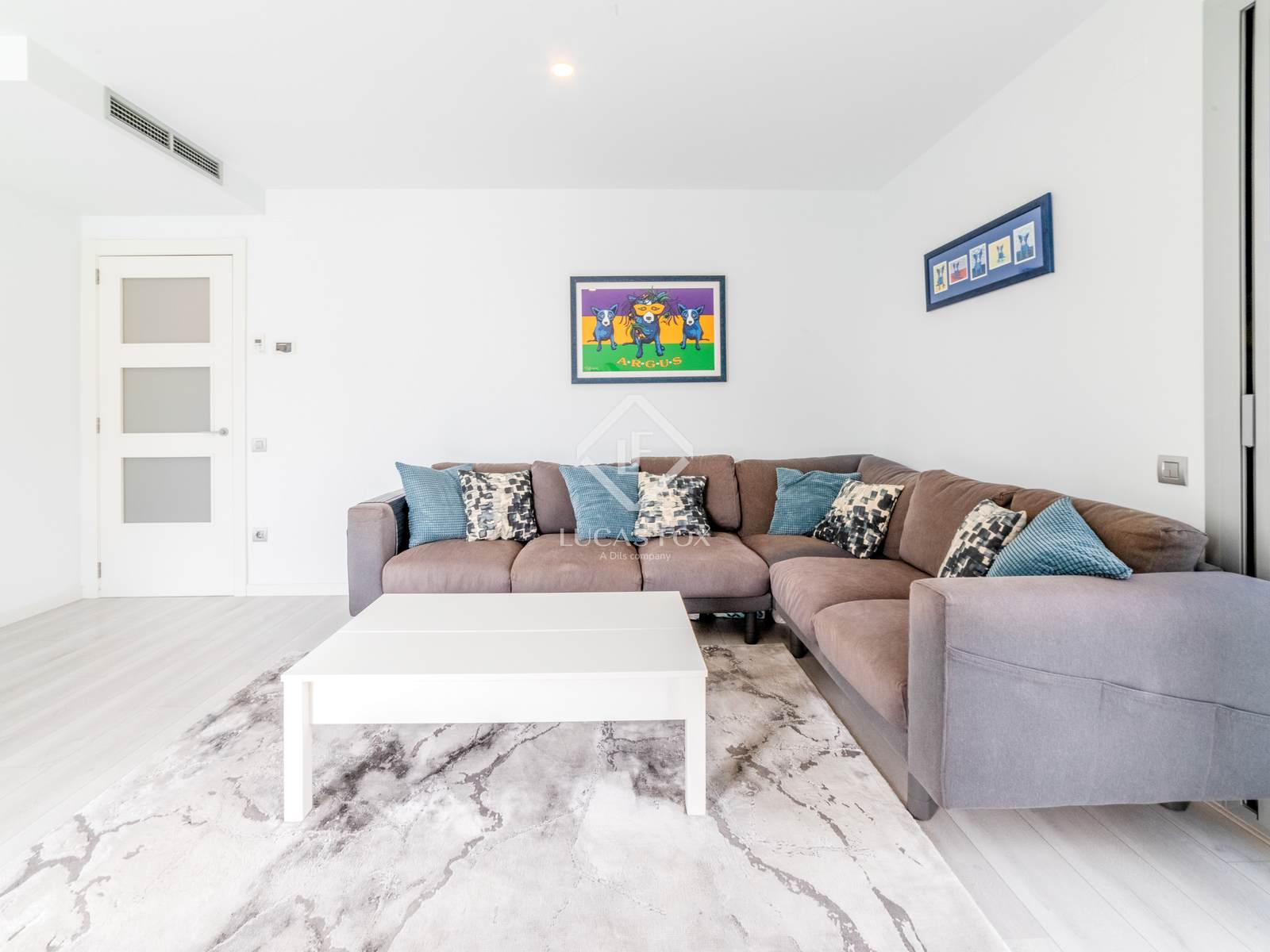 Bright 2-bedroom corner apartment with a balcony, lateral sea views and open-plan living, in a modern building near Sitges seafront.