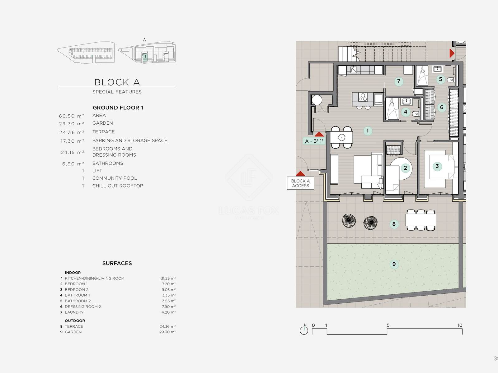 The design, by SgArq Passivhaus Architecture, combines materials such as stone and wood with large windows and overhangs that create depth and visual harmony. The development offers an elegant and bright entrance hall, an underground garage with spacious individual parking spaces, storage rooms, and direct and secure access to the landscaped gardens and communal swimming pool.