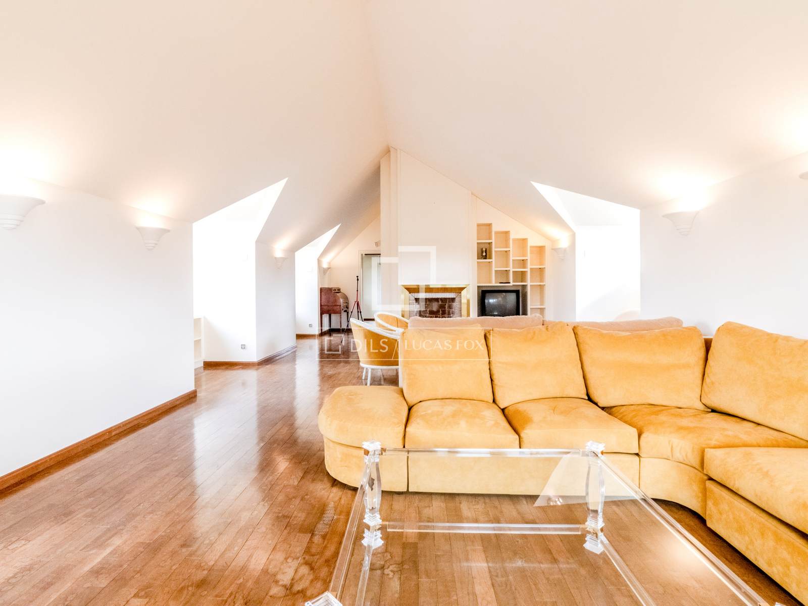 There is a very large attic space which houses a library/living area with a fireplace. It is divided into 2 rooms. There are high quality wooden floors and a terrace at one end with a glimpse of the sea.