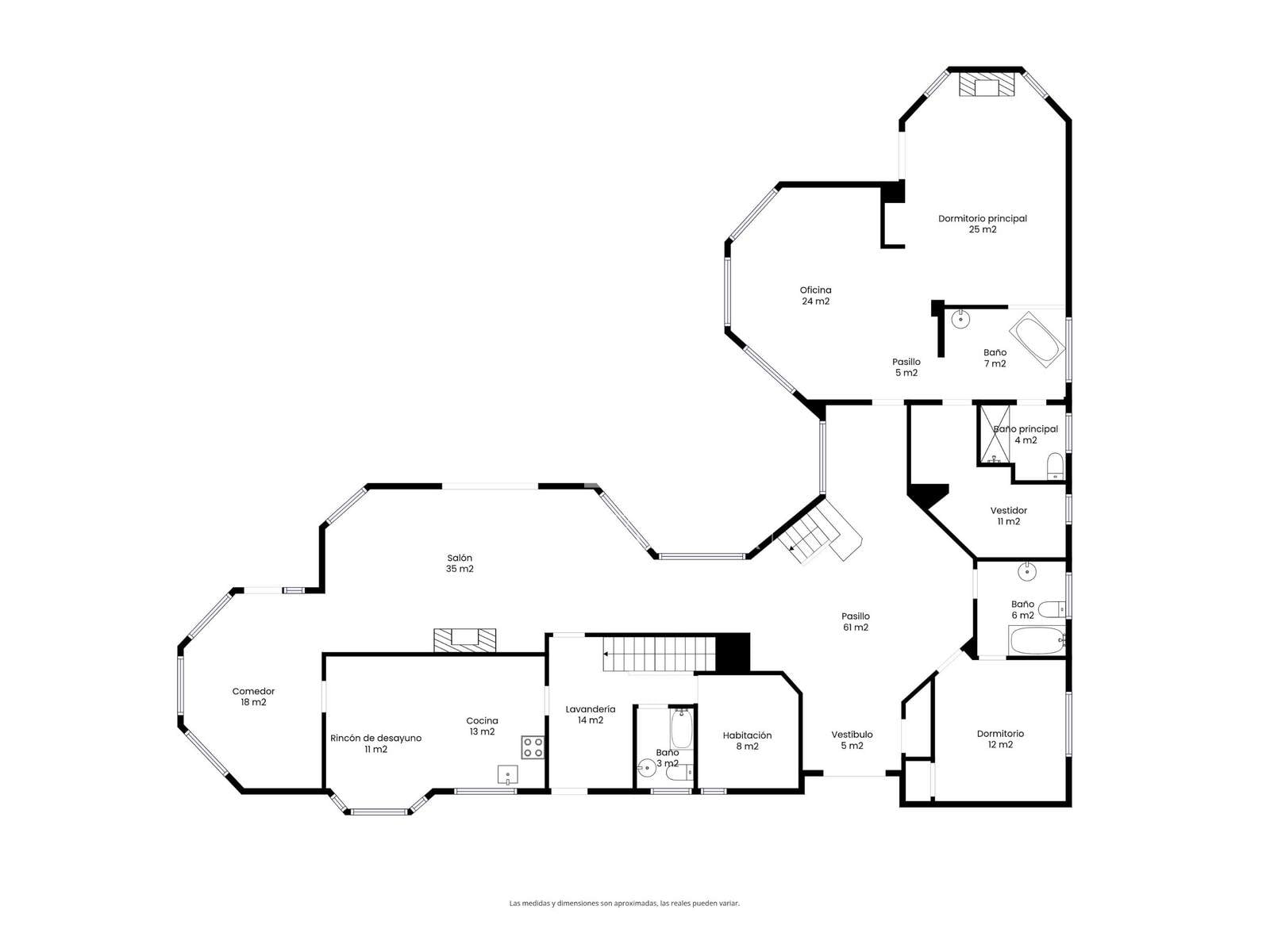 Moving on we find the large fully equipped kitchen, a separate laundry room, the service quarters and a guest toilet. Also on the entrance level are 2 double bedrooms, one of which is the master room with ensuite bathroom, a fireplace and even an office space.