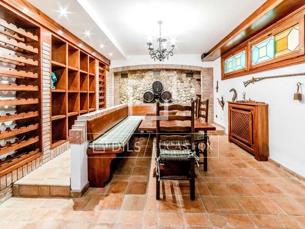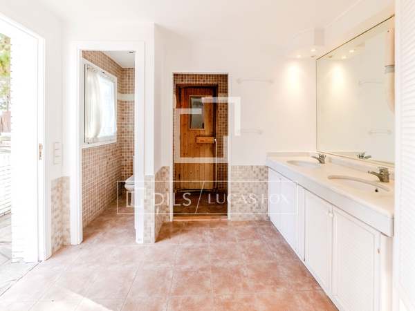 5-bedroom luxury villa for sale in Can Girona with golf course views, pool, sauna, and wine bodega.