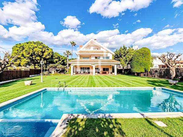 This modern 5-bedroom luxury villa of approximately 550 m² built on a 1,520 m² plot is set in one of Sitges’ most exclusive residential areas, Can Girona, directly bordering the Terramar Golf Course.