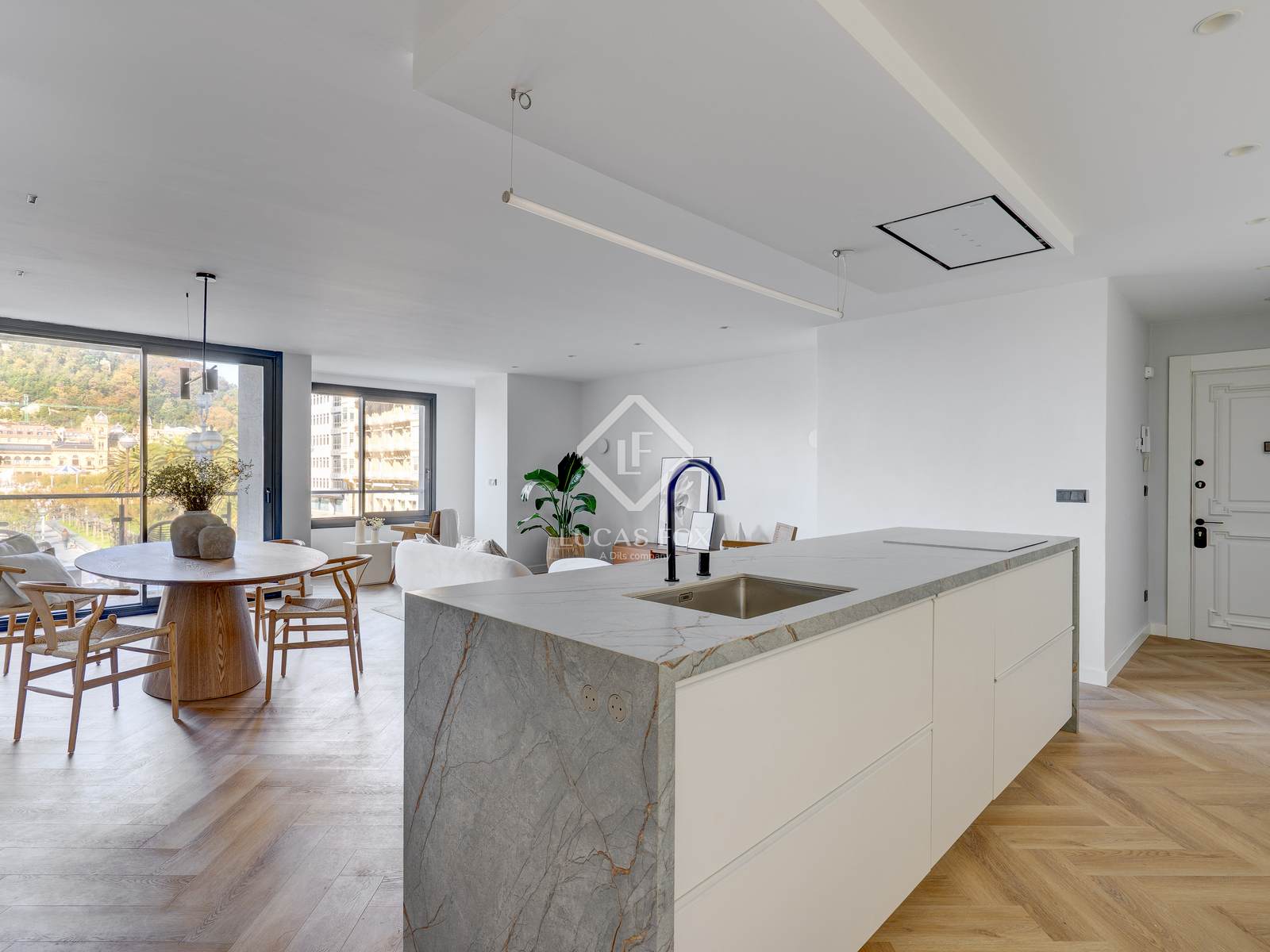 Apartment with views of La Concha Bay, with a large living-dining room-kitchen, with access to a terrace, in a concrete structure building, prime location on the corner of Avenida de la Libertad and Calle Urbieta, in San Sebastián.