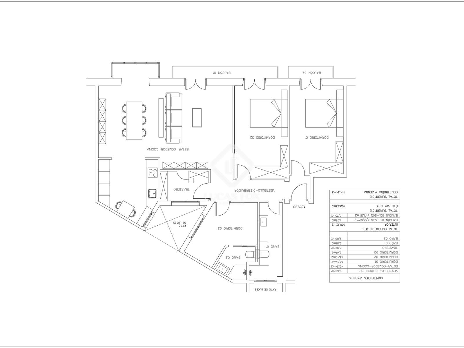 It is distributed in a living-dining room with integrated kitchen, three quiet and cozy bedrooms, including the master bedroom with balcony and built-in wardrobes, and two complete bathrooms with a contemporary design and fully equipped.