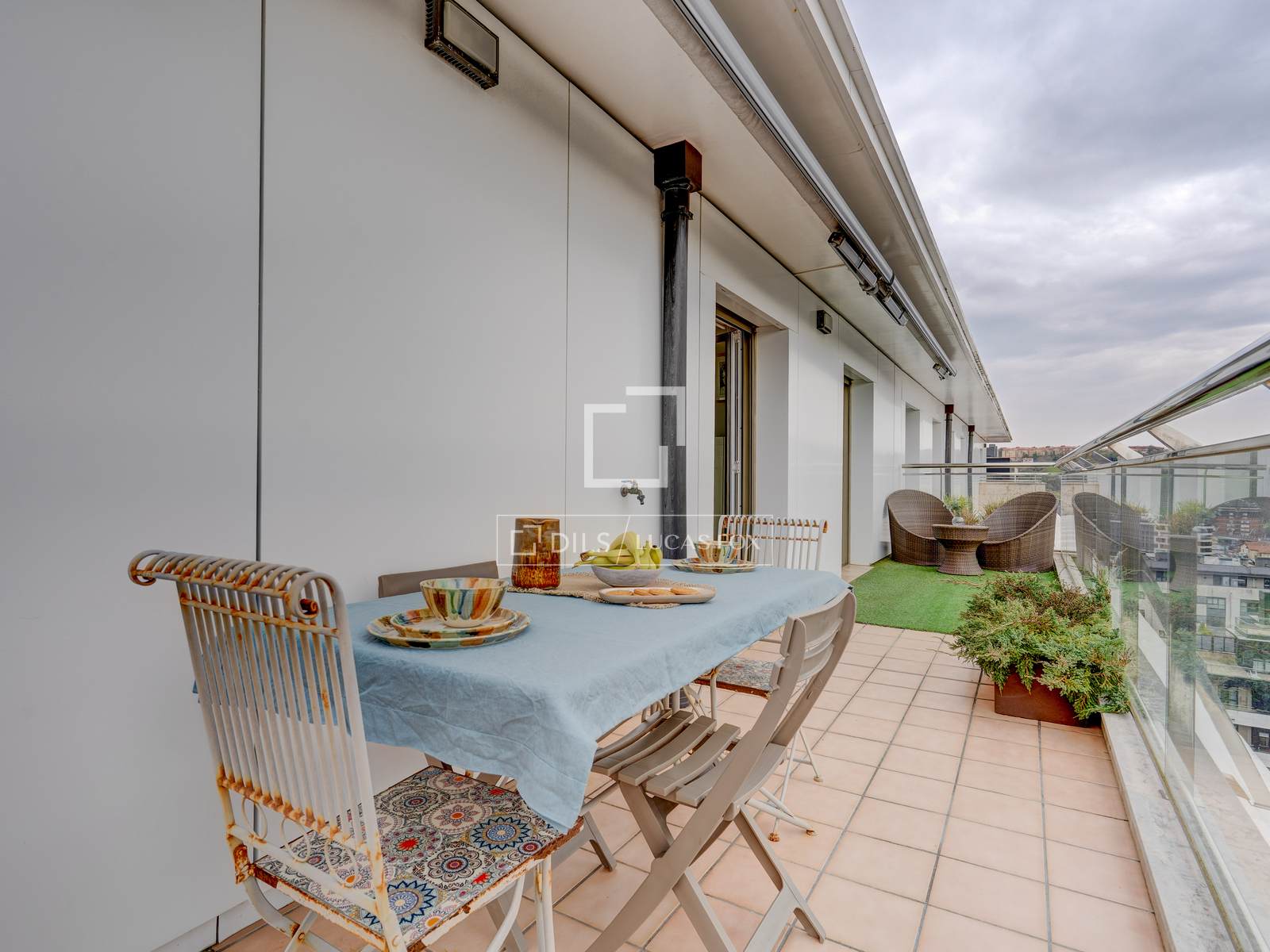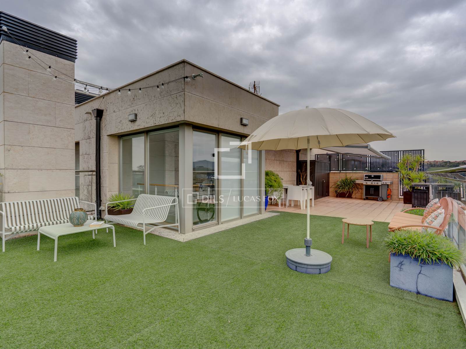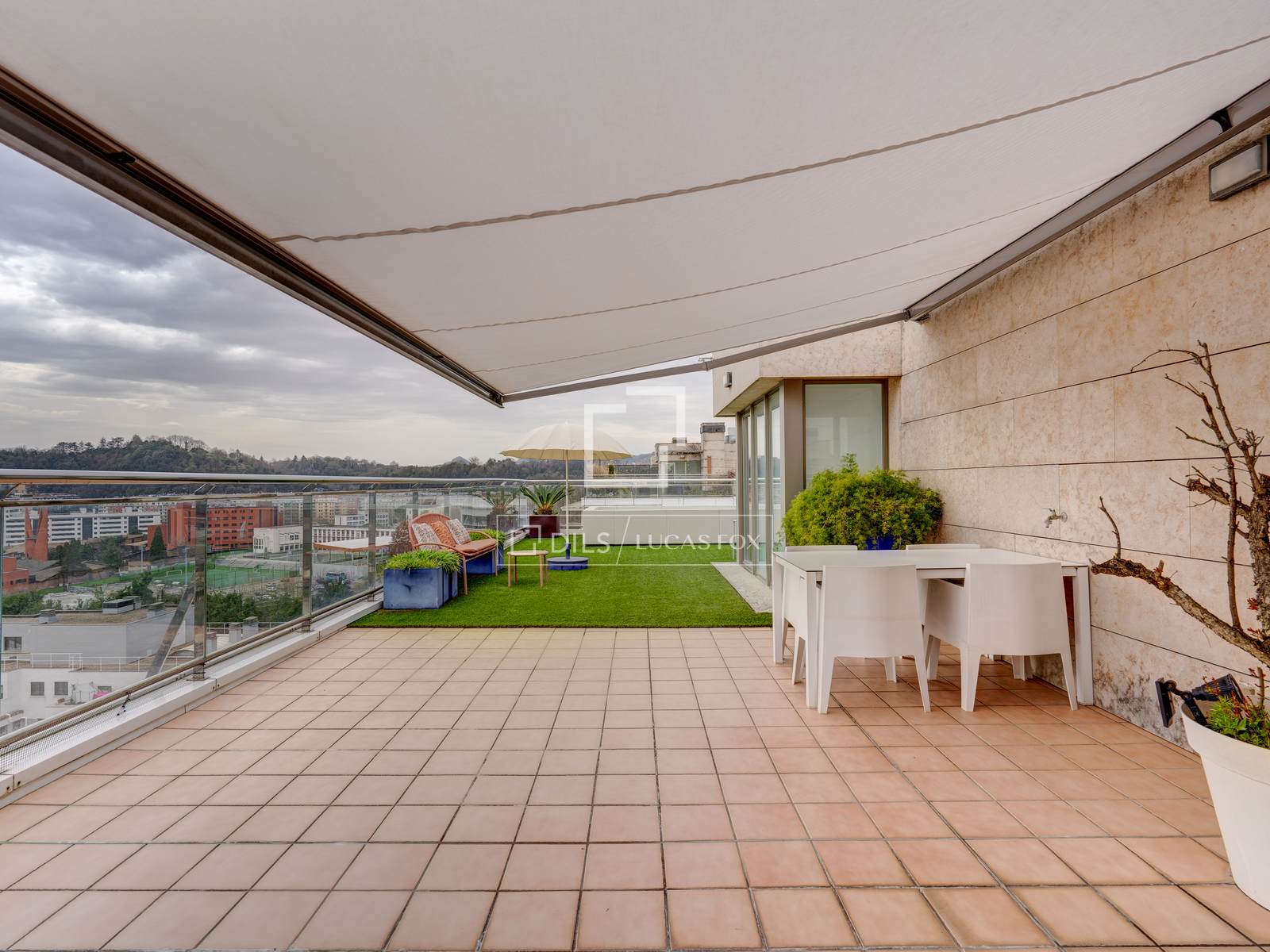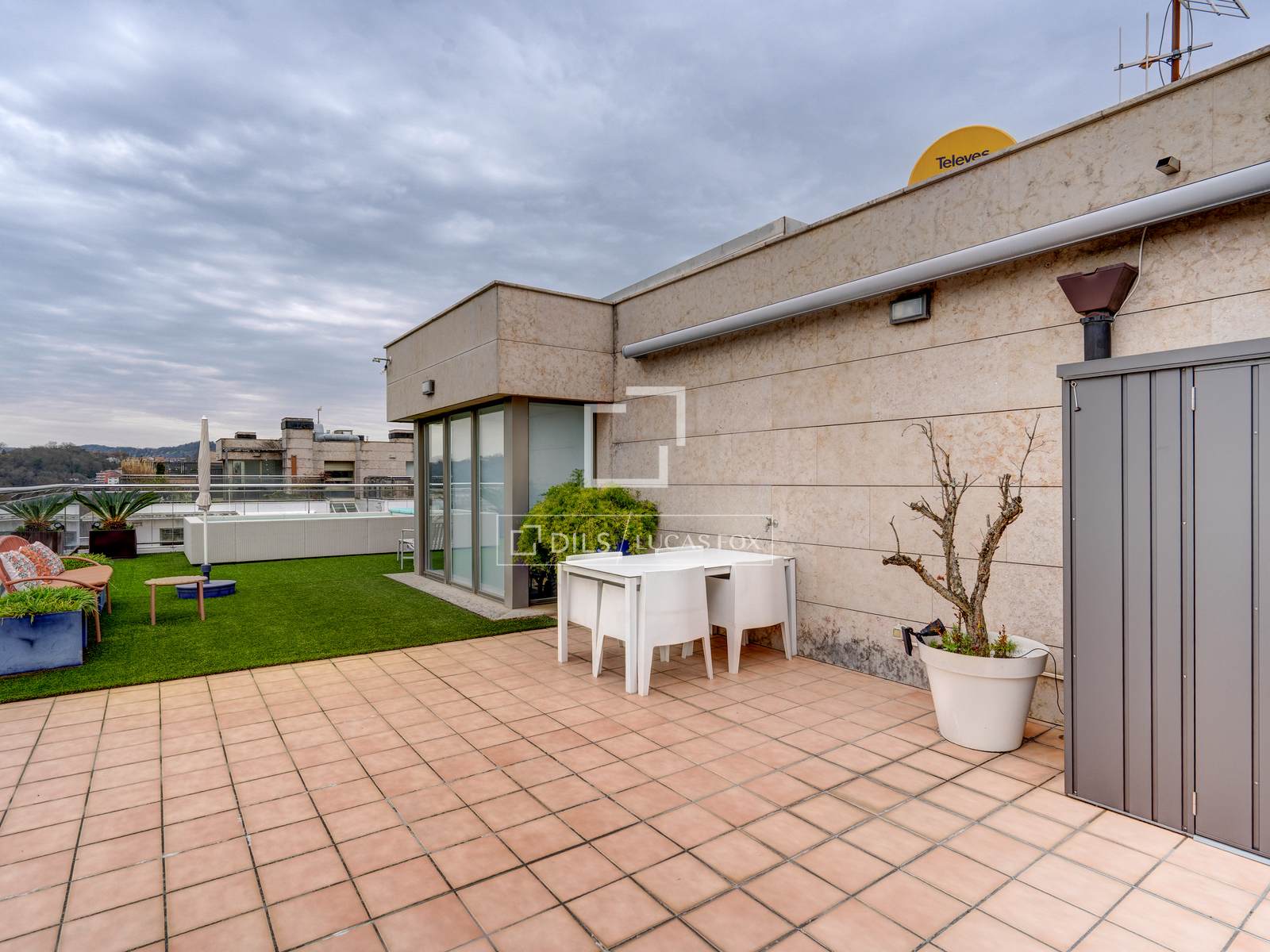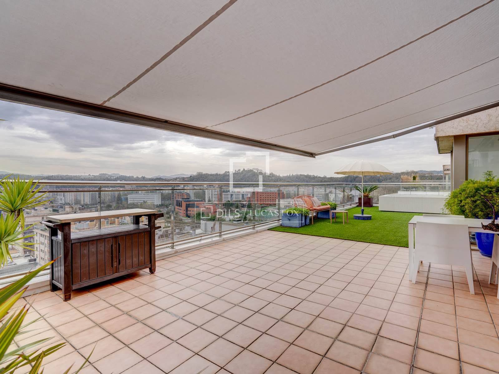 On the upper floor , which is accessed next to a beautiful decorative mosaic, there is a spectacular 85 m² terrace, equipped with a barbecue, electric awning, chill-out area and heated pool, from where you can enjoy panoramic views of the entire city.
