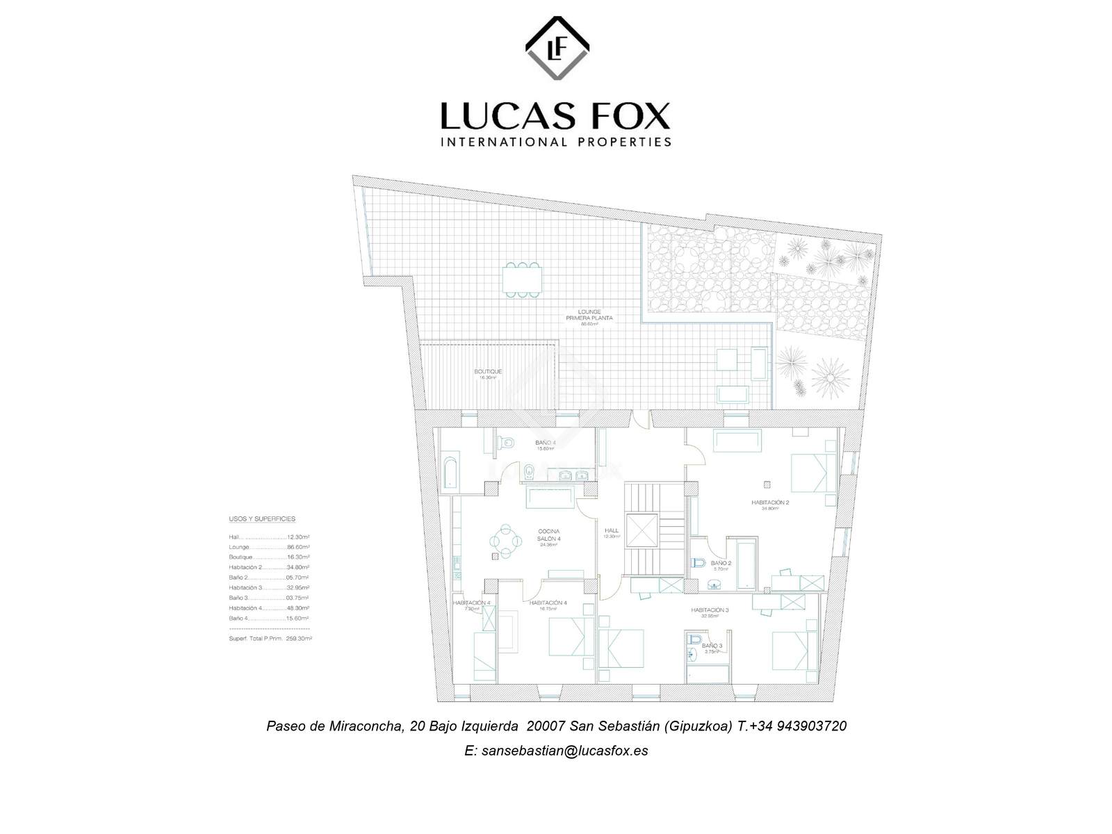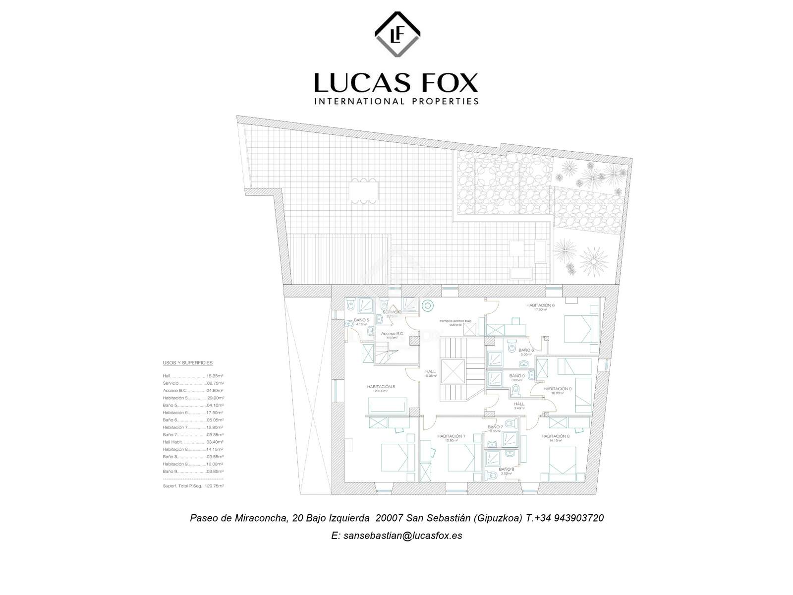 Exterior, it has two spectacular terraces: one on the ground floor of 70 m² and another on the first floor of 86.60 m², as well as a private garden .