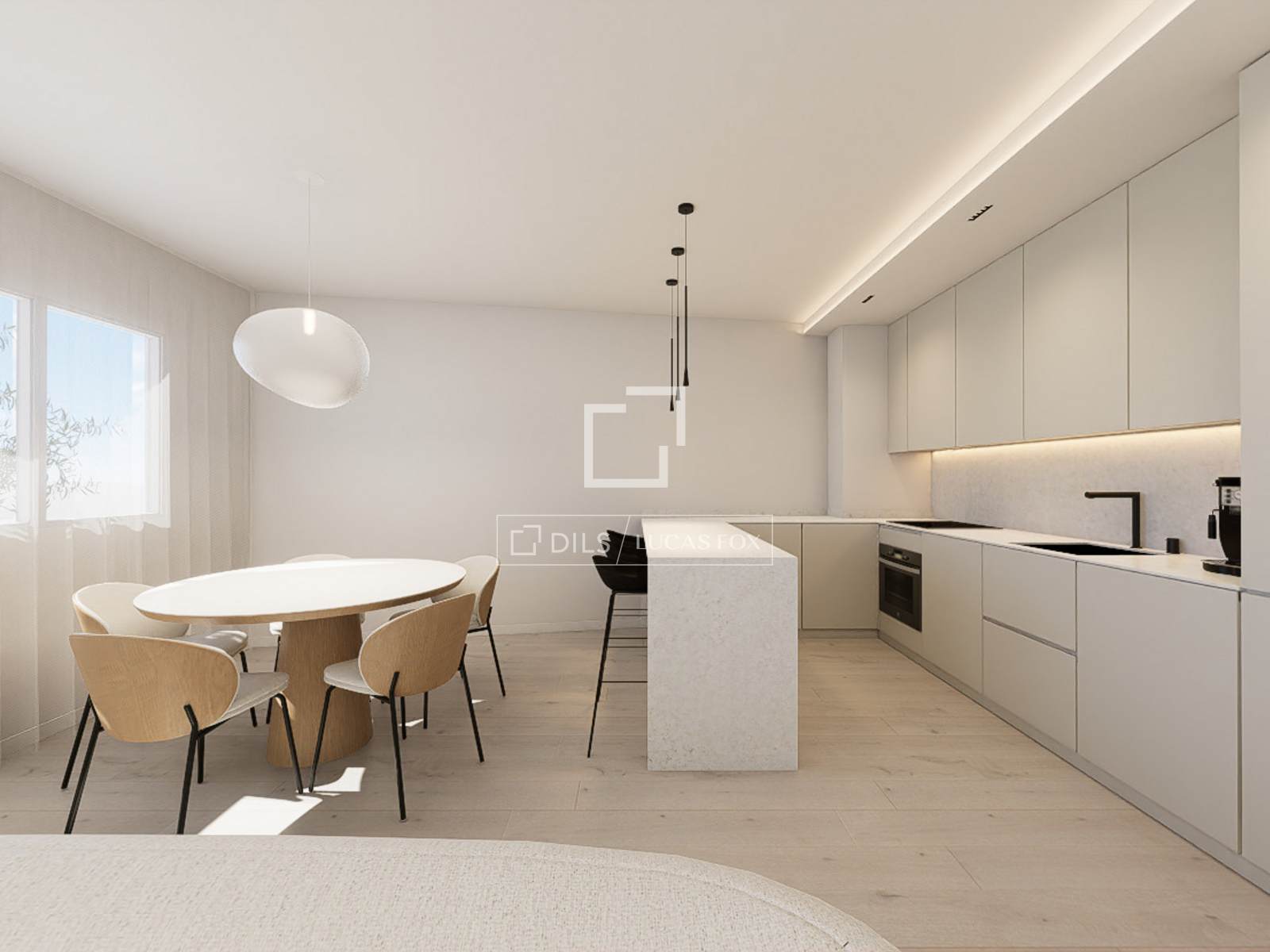 The property will feature a modern and functional layout , comprising three spacious bedrooms and two complete bathrooms, one of which is en suite. The main living area is a bright living-dining room with an open-plan kitchen, designed as a open-plan and welcoming space, ideal for both everyday living and entertaining guests.