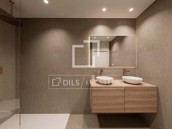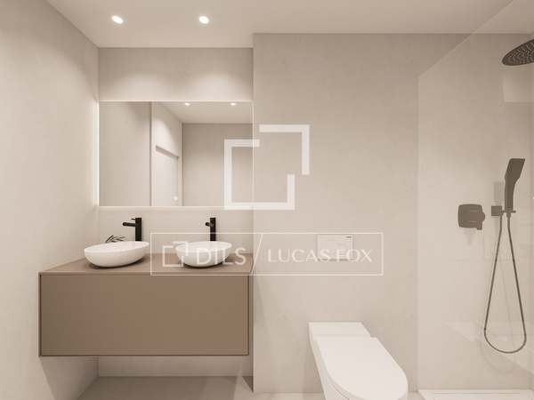 Among its qualities are the exterior carpentry with Passive House certification for excellent thermal and acoustic insulation, aerothermics system, ducted air conditioning, large format porcelain, recessed taps, white lacquered doors, AC6 laminate floor and integrated appliances .