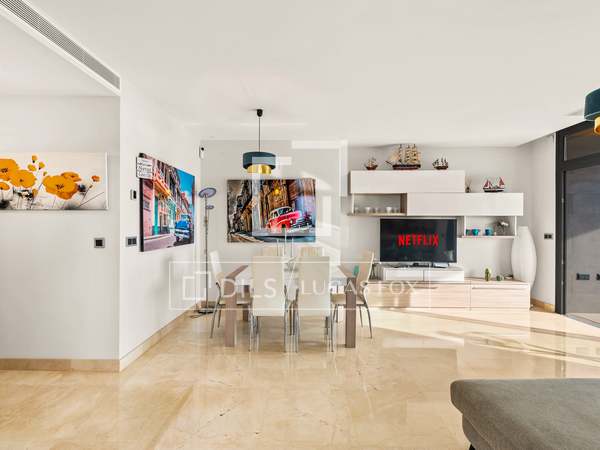 Exclusive bright apartment with top-quality finishes, parking space, storage room room and communal areas with swimming pools and gym, just 850 meters from the beach.