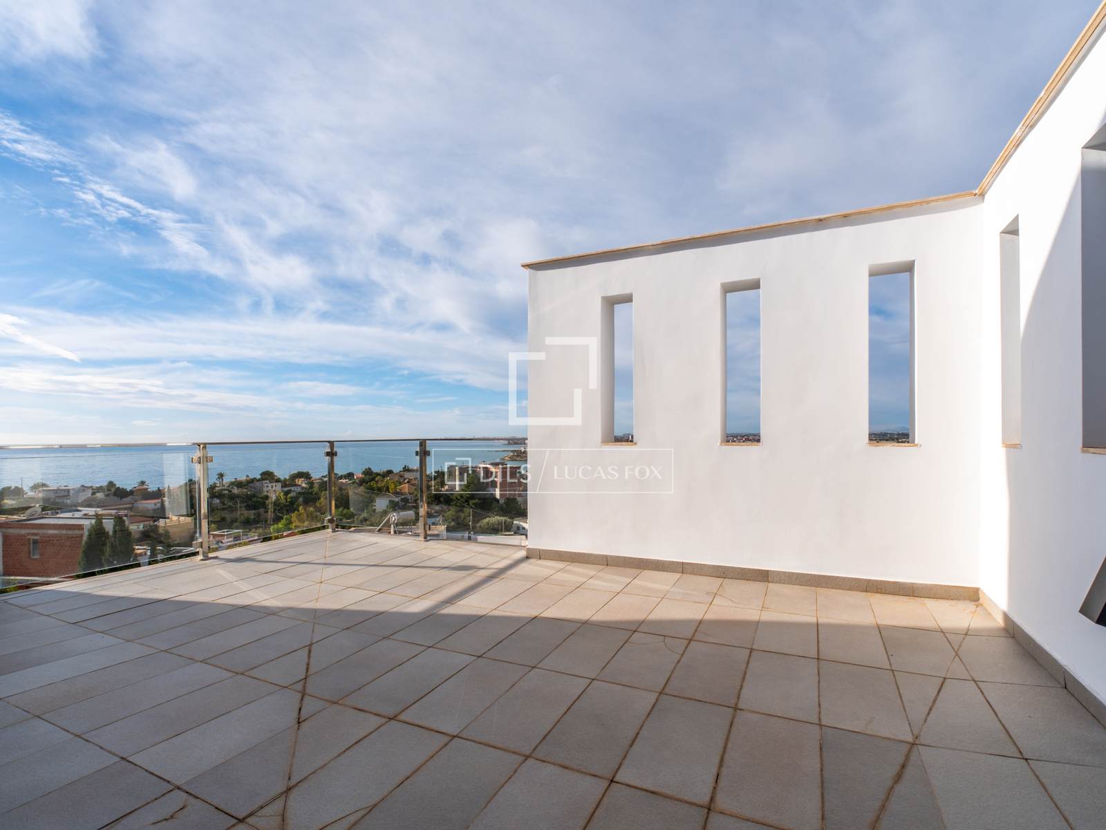 The property is spread over several floors and stands out for its spacious rooms and abundant natural light. On the main floor , there is an elegant and spacious living room, ideal for gatherings and relaxation, next to a large, fully equipped kitchen. From this floor, there is direct access to a spectacular terrace with a private pool, perfect for enjoying the sun, sea views, and unforgettable evenings outdoors.