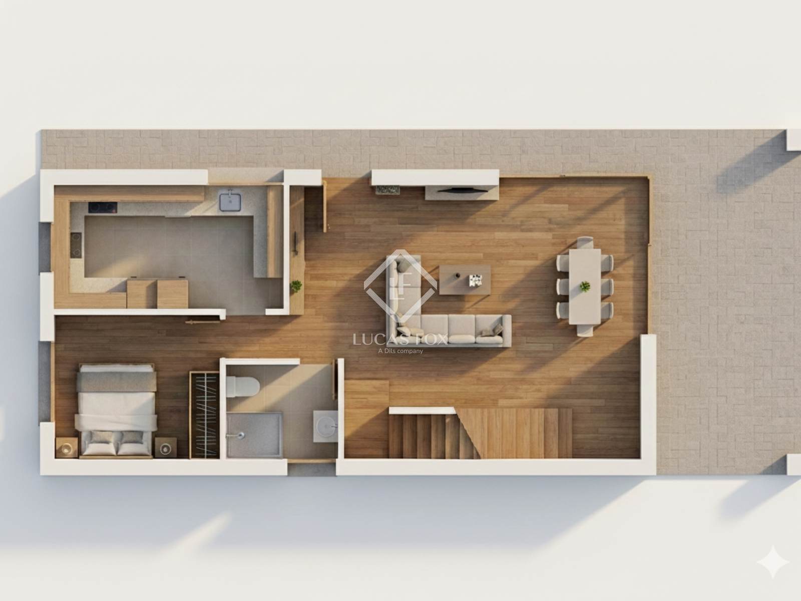 The interior is cleverly laid out: an open-plan ground floor with a living-dining room-kitchen area and a guest bedroom ; and an upper floor with the master suite featuring a private terrace and two additional double bedrooms. The real gem is the naturally lit semi-basement, a perfect blank canvas for creating a cinema room, gym, office, or additional bedrooms to suit your needs.