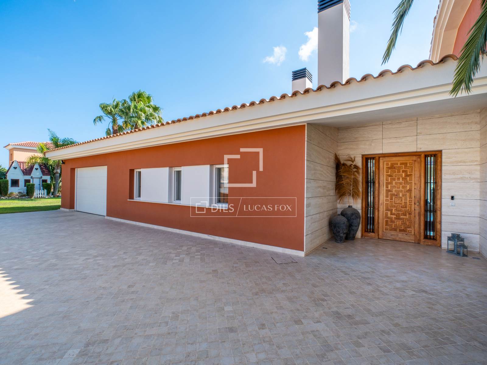 La vivienda dispone además de un garaje privado con capacidad para varios vehículos, acceso automatizado y espacio de almacenamiento adicional.