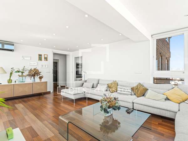 Spectacular 150 m² penthouse with 47 m² of private terraces, three bedrooms, two bathrooms, and an included parking space and storage room. Bright, modern, south-facing, it features a kitchen with a sliding door, air conditioning, and built-in appliances.