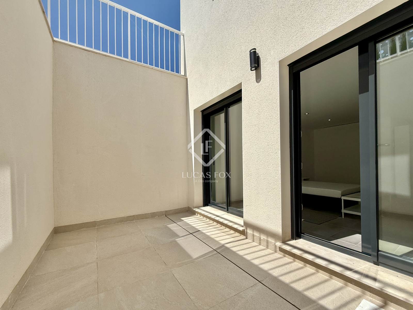 The lower ground floor consists of a one- room area with plenty of natural light and a spacious English patio, as well as a full bathroom .