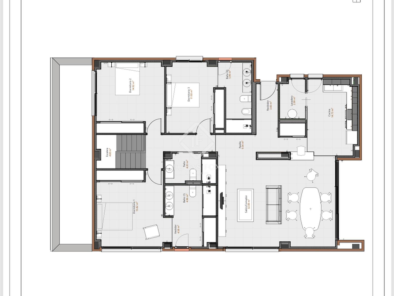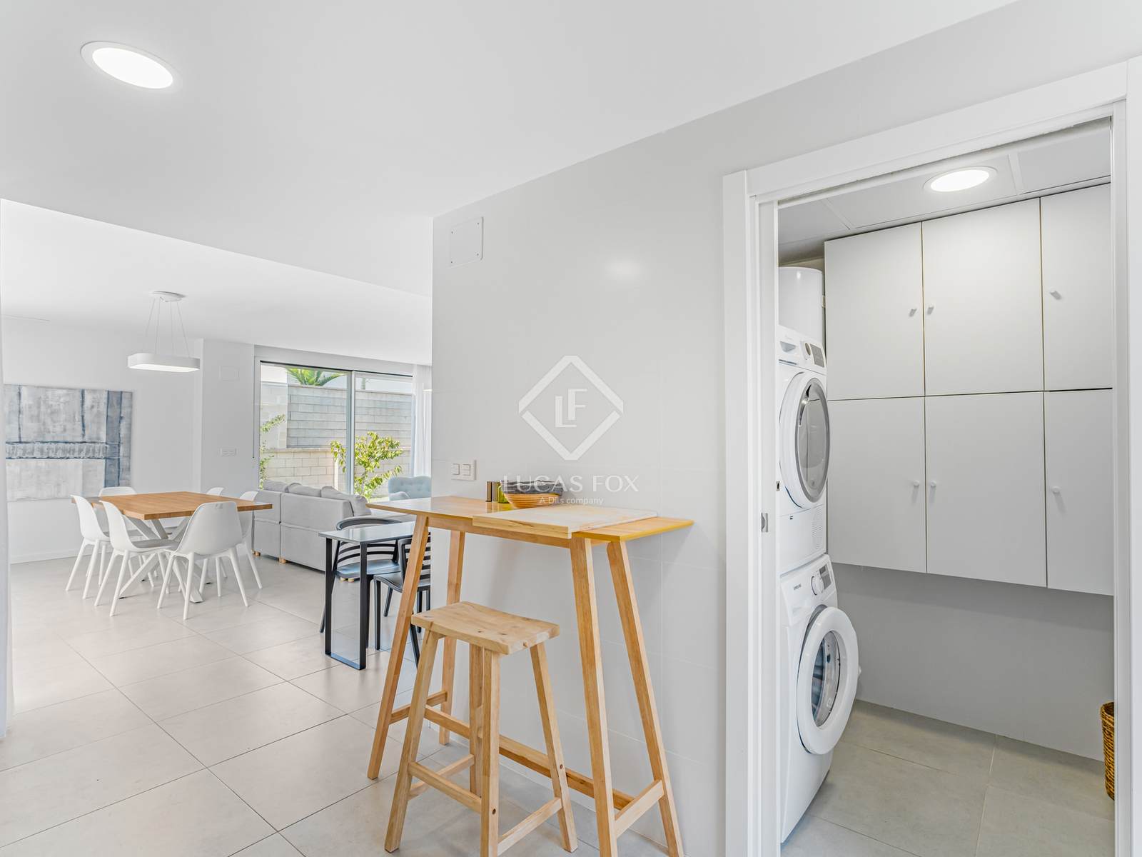 The property welcomes us with a sense of light and openness. The interiors are bright and modern, with a carefully designed layout that ensures fluid transitions between spaces. The heart of the home is the fully equipped open kitchen, which integrates seamlessly with the living and dining areas. This open-plan concept not only enhances the sense of space but also creates the perfect environment for both everyday family life and entertaining guests.