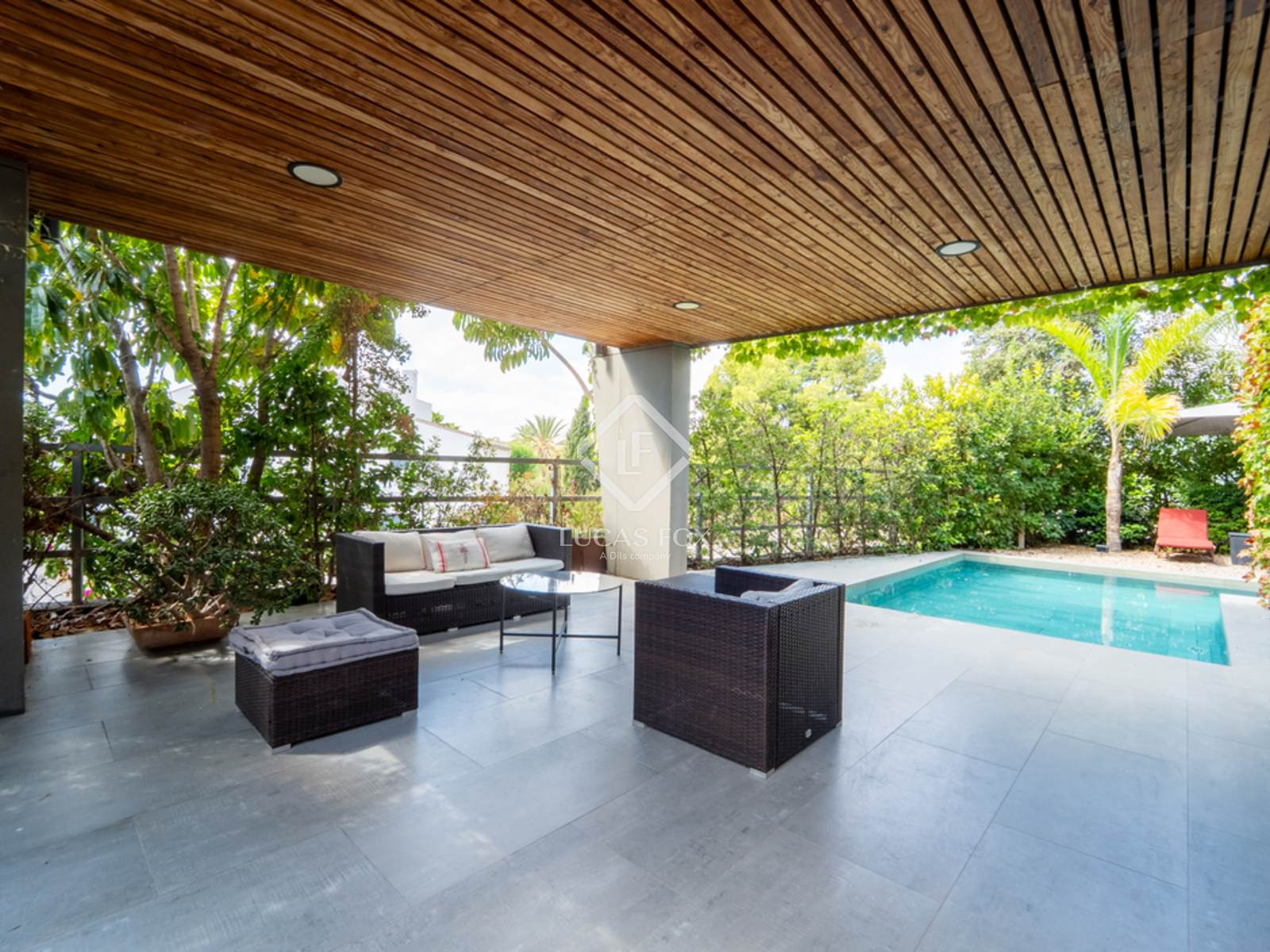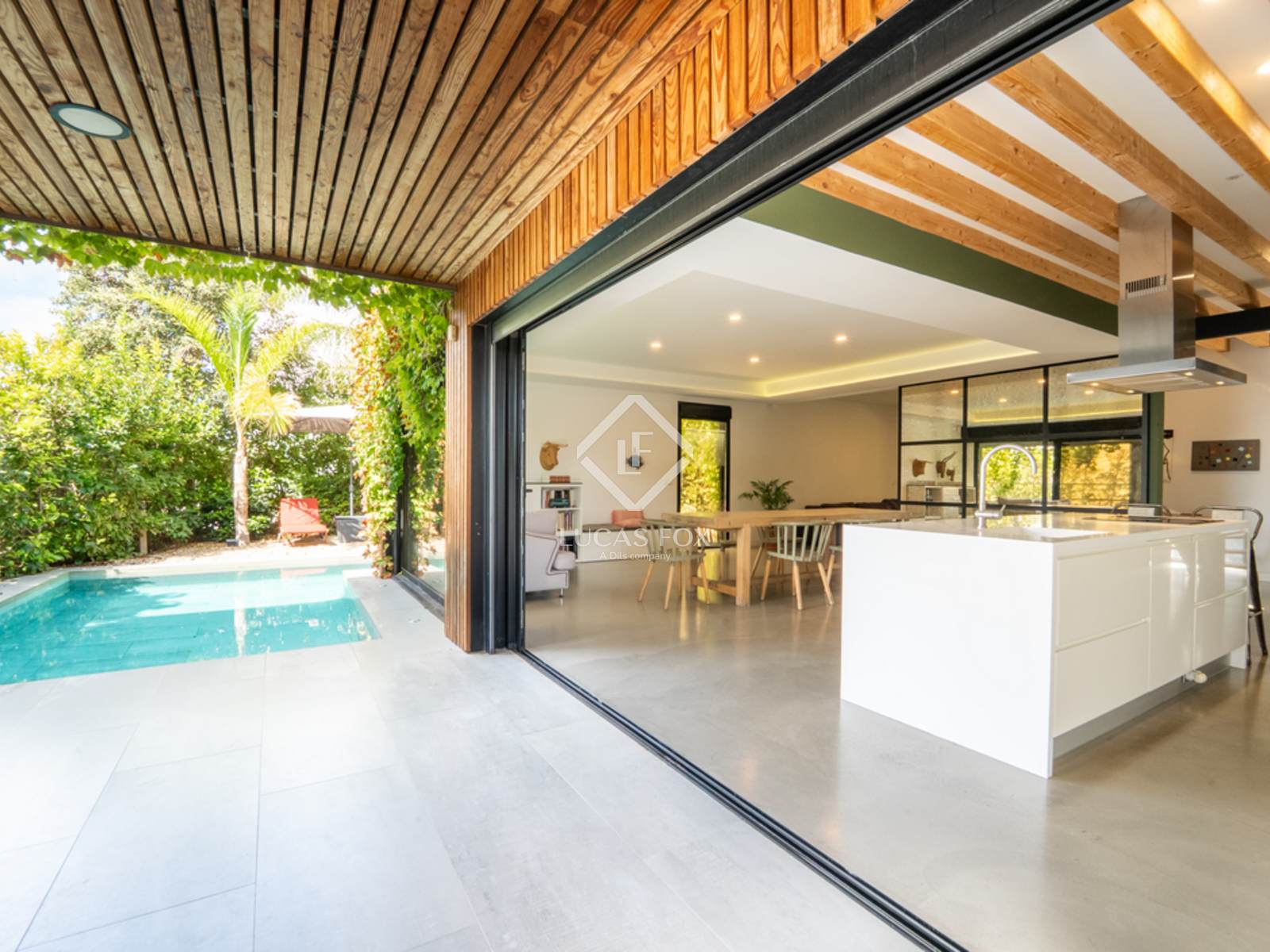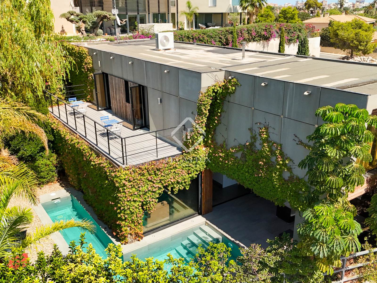 Exclusive designer home in Lloixa, San Juan, offering 205 m² of living space on a 500 m² private plot. The house features a bright open-plan kitchen, dining and living area downstairs, with direct access to the pool and garden.