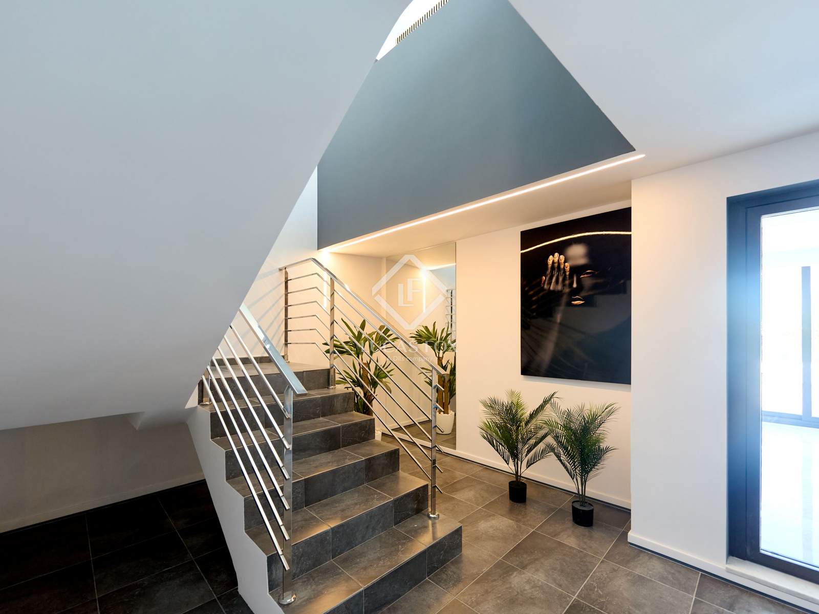On the lower floor, A guest apartment provides additional space for visitors, ensuring privacy and comfort with a lounge and a fully equipped open kitchen, a bedroom with a bathroom.