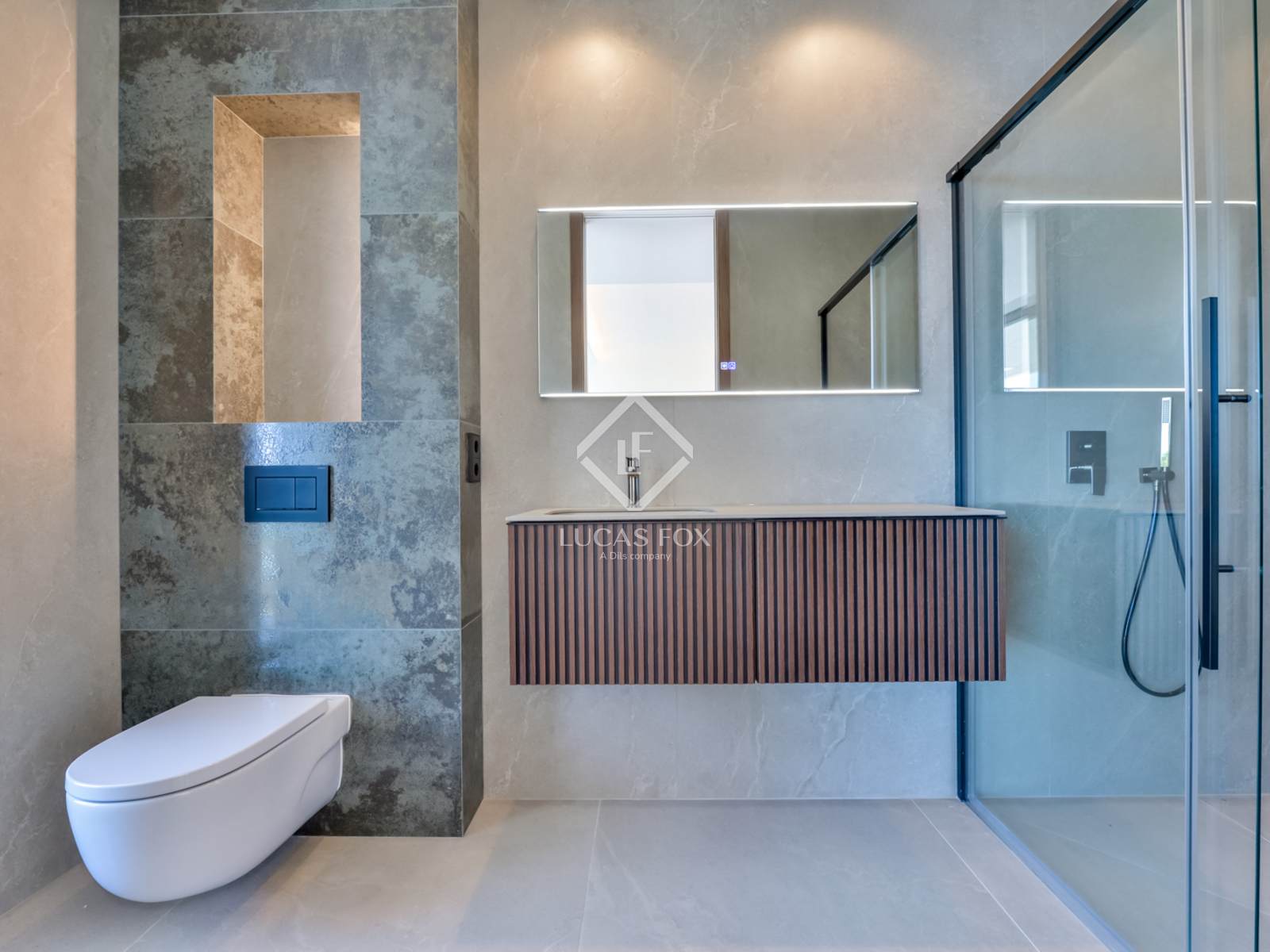 Its exclusive features include underfloor heating ducted air conditioning with a hot-and-cold system, and a high-efficiency aerothermics system. It also includes a ventilation system with heat recovery, a photovoltaic system for energy self-consumption, video surveillance, and an alarm for added security.