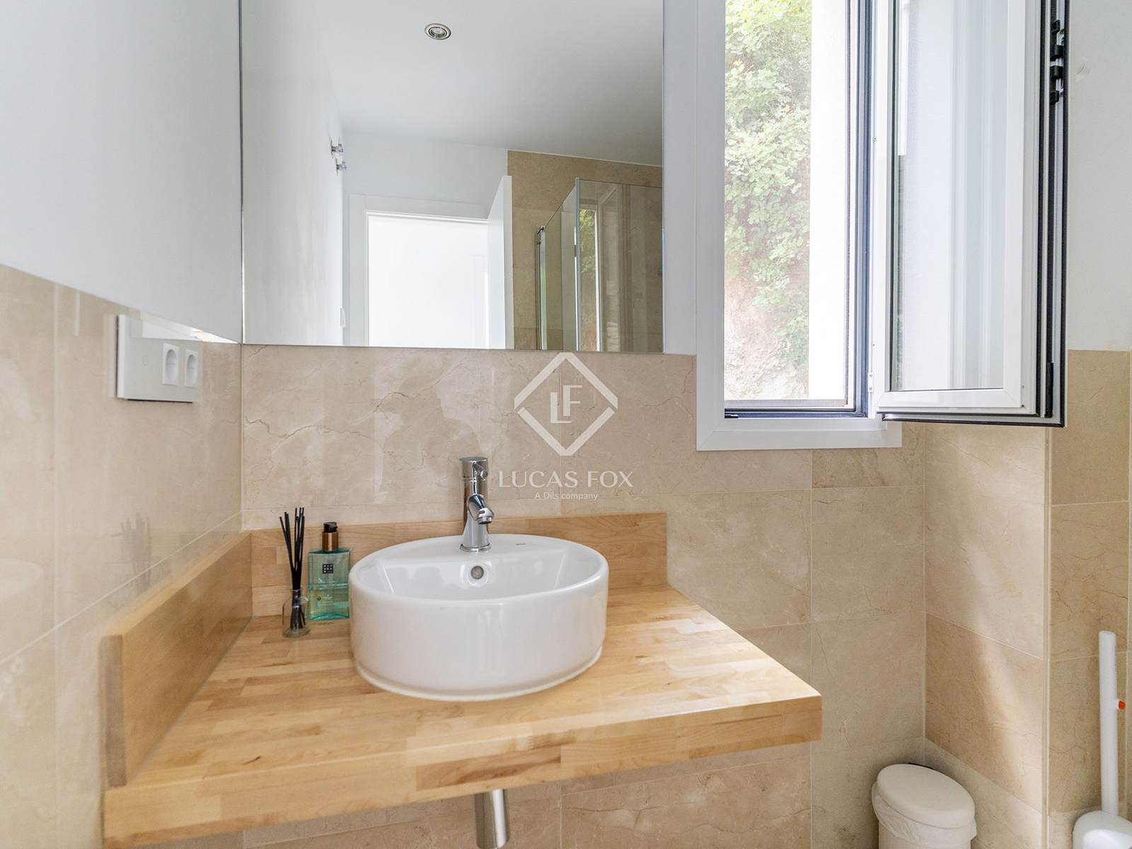 A beautifully designed wooden staircase and a lift connect all levels of the house. The main (middle) floor features a modern open-plan kitchen, a bright living room, and an elegant dining area, along with a guest toilet. From both the kitchen and the living space, you step out onto a generous terrace that includes a private swimming pool, a barbecue area, and multiple spots to relax and enjoy the Mediterranean lifestyle with stunning sea views.