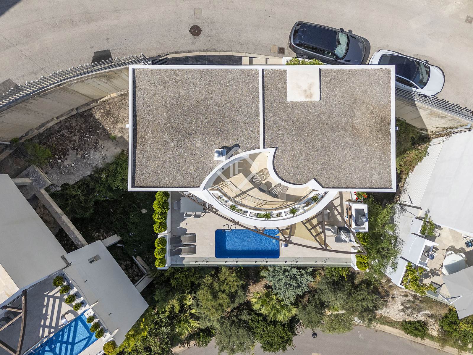 This elegant villa, built in 2022, is located in a quiet residential area renowned for its peaceful atmosphere and elevated position, offering sweeping panoramic views of the Mediterranean Sea. The neighbourhood is considered very safe, ensuring a secure and serene environment for its residents.