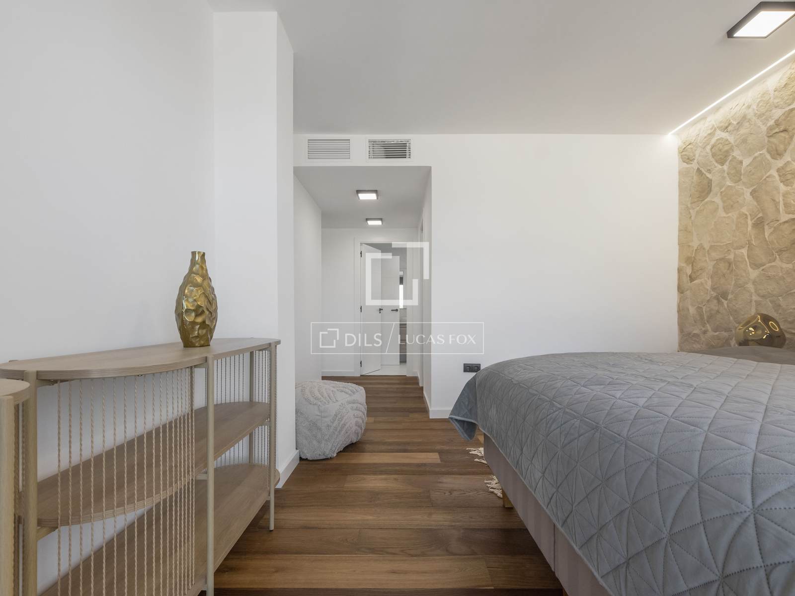 Descending to the lower floor , you'll find the bedroom area. The main bedroom features an en-suite bathroom , a dressing room, and direct access to a private terrace, creating a more intimate atmosphere. This floor also includes two additional bedrooms, a full bathroom , and a spacious hall that functionally connects all the spaces.