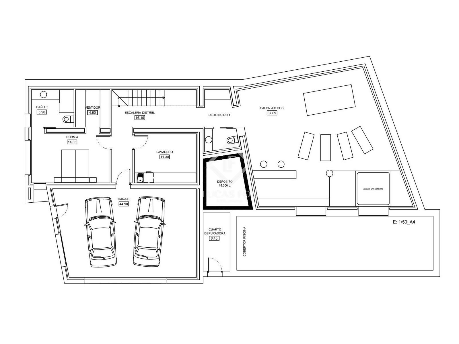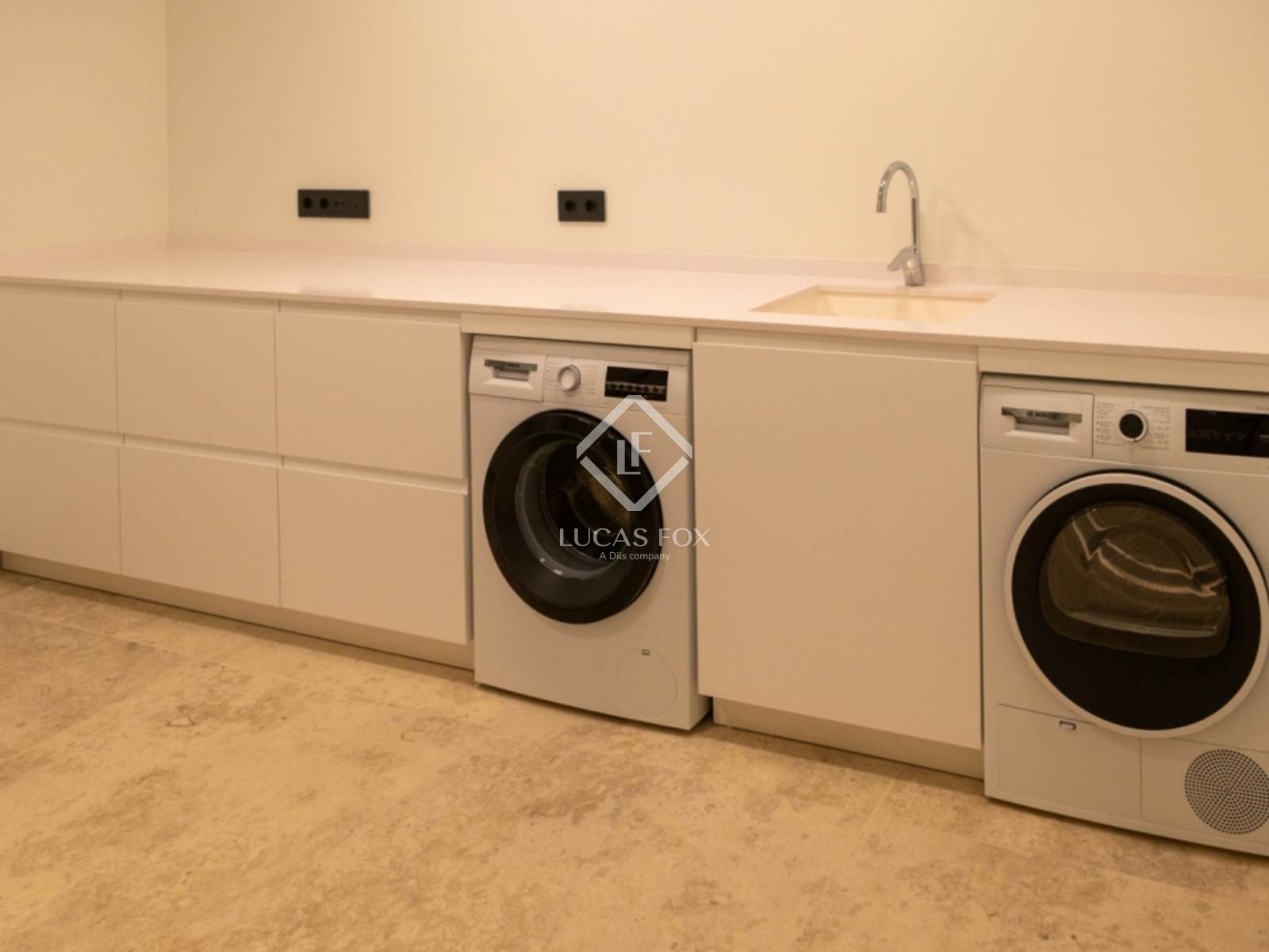 The ground floor houses a spacious private two-car garage with ramp access , a guest toilet, a utility room , and an additional bedroom with an en-suite bathroom and dressing room. It also offers a large multi-purpose area, perfect for a home cinema, games room, spa, or relaxation area, with pre-installation for a jacuzzi, bar, cinema system, and mechanical ventilation with heat recovery.